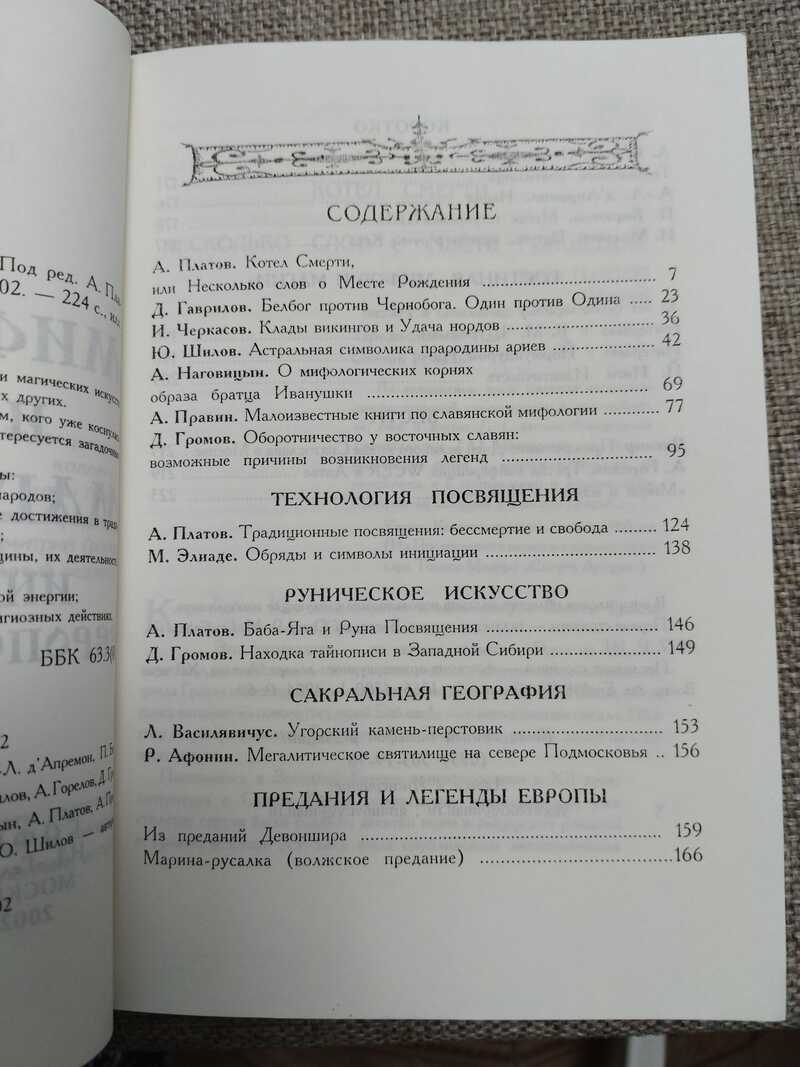 Альманах посвящен вопросам мифологии, древних религиозных и магических искусств индоевропейских народов: славян, скандинавов, кельтов и многих других. Основные направления работ, представленных в альманахе: мифология и дохристианские религии индоевропейских народов, магические искусства индоевропейцев, включая новейшие достижения в традиционных искусствах и исследовании древних методов и практик, современные языческие религии ,языческие группы и общины, их деятельность, вера и ритуалы, сакральная география, магия `мест Силы` и магия земной энергии, структура обряда и ритуала ,их роль в магических и религиозных действиях. Гаврилов. Белбог против Чернобога. Черкасов. Клады Викингов и удача Нордов. Шилов. Астральная символика прародины ариев. Громов. Оборотничество у восточных славян: возможные причины возникновения легенд. М. Элиаде. Обряды и символы инициации. Громов. Находка тайнописи в Западной Сибири. Василявичус. Угорский камень-перстовик. Афонин. Мегалитическое святилище на севере Подмосковья и др.