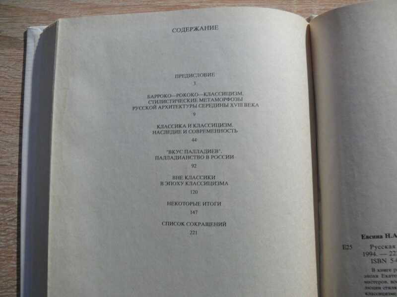 В книге рассматривается эволюция стиля русской архитектуры эпохи ее расцыета. Анализ проектов, произведений крупных зодчих и безвестных мастеров, воспоминаний современников позволяет раскрыть многогранную картину эволюции стиля, который находил воплощение в поздних работах барокко, раннем и зрелом классицизме, в так называемых готоческих вариациях. Отдельно выделена глава , посвященная русскому палладианству (работы Н.А.Львова,М.Ф.Казакова и др.)