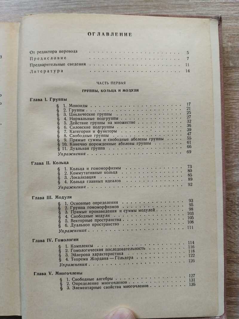 Автор книги, видный американский математик, профессор Колумбийского университета С. Ленг, хорошо знаком читателю по книгам «Алгебраические числа» и «Введение в теорию дифференцируемых многообразий» (издательство «Мир», 1966 и 1967). В настоящей книге рассмотрены все основные разделы современной алгебры (группы, кольца, модули, теория полей, линейная и полилинейная алгебра, представления групп). Читатель найдет здесь также первоначальные сведения по гомологической алгебре и алгебранической геометрии. Книга отражает изменения, происшедшие в алгебре за последние два десятилетия (на момент издания книги), и дает читателю возможность основательно познакомиться с областями алгебры, ставшими уже классическими. Язык категорий и функторов связывает воедино разрозненные ранее понятия и результаты.