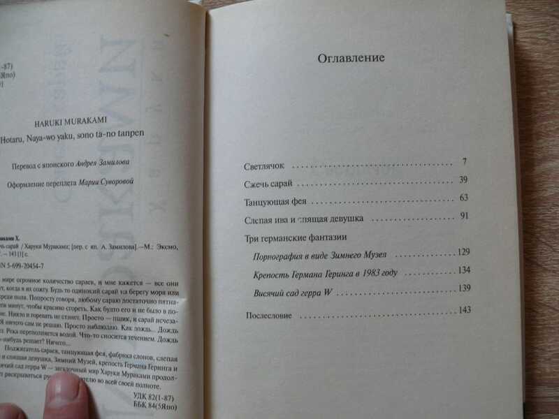 «…В мире огромное количество сараев, и мне кажется, все они ждут, когда я их сожгу. Будь то одинокий сарай на берегу моря или посреди поля. Попросту говоря, любому сараю достаточно пятнадцати минут, чтобы красиво сгореть. Как будто его и не было в помине. Никто и горевать не станет. Просто - пшик, и сарай исчезает. Я ничего сам не решаю. Просто наблюдаю. Как дождь… Дождь идет. Река переполняется водой. Что-то сносится течением. Дождь что-нибудь решает? Ничего…» Поджигатель сараев, танцующая фея, фабрика слонов, слепая ива и спящая девушка, Зимний Музей, крепость Германа Геринга и висячий сад герра W - загадочный мир Харуки Мураками продолжает раскрываться русскому читателю во всей своей полноте. Вес книги: 190 гр.