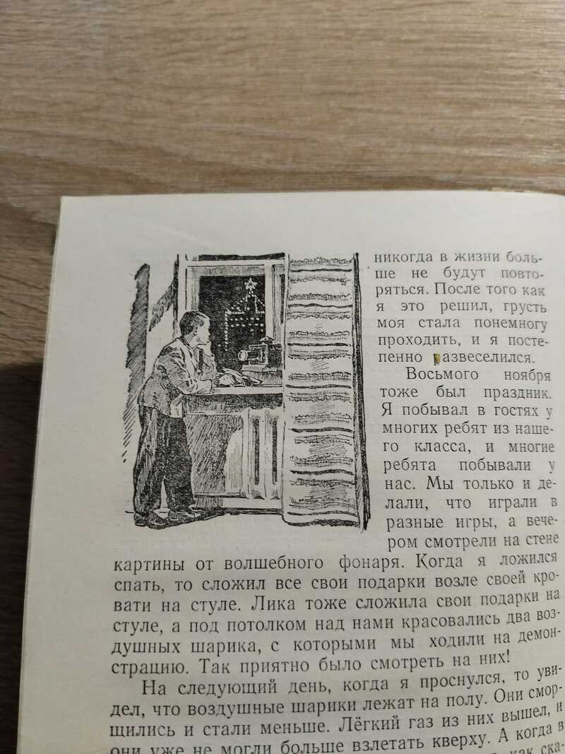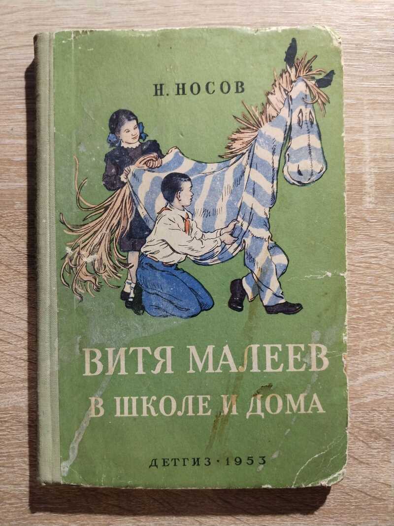 Прижизненное издание классика детской литературы Н.Н. Носова (1908 -1976). Это повесть о школьных друзьях - Вите Малееве и Косте Шишкине: об их ошибках, горестях и обидах, радостях и победах. Впервые повесть была опубликована в шестом номере журнала «Новый мир» за 1951 год, но когда издательство «Детгиз» готовилось выпустить повесть отдельной книгой, то Носов значительно переработал текст. В 1952 году журнальный вариант книги удостоен Сталинской премии третьей степени. Сам Носов довольно холодно отзывался о повести и считал, что Сталинской премии она не заслуживала. В начале восьмой главы было упомянуто имя Сталина, но в период десталинизации упоминание было убрано. По сравнению с изданиями 1951 и 1952 годов художником переработана обложка и изменены часть рисунков.