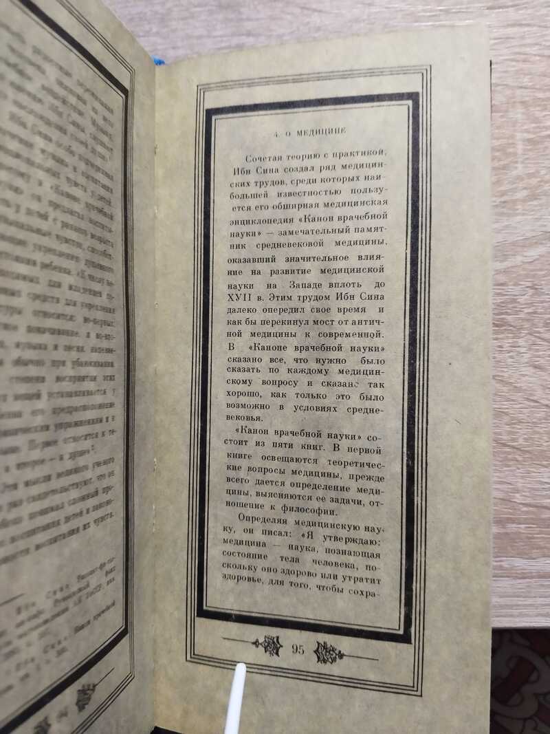 Книга о великом ученом мыслители энциклопедисте Востока Абу Али Ибн Сине, его исторической роли в политической, экономической и культурной жизни народов Средней Азии. В издании рассматриваются прогрессивные мистико-философские идеи и дидактические методы выдающегося ученого-энциклопедиста средневекового Востока Абу Али ибн Сины (980 - 1037). Исследуются гносеологические и логические положения мыслителя. Рассматриваются проблемы соотношения души и тела в человеке и его духовного совершенствования. Типографски `состаренная` бумага Тираж 6 тыс.