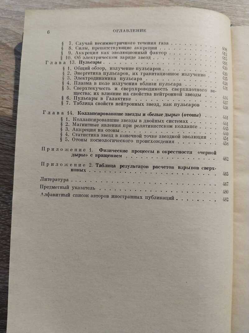Эволюция звезд и грандиозные явления их взрыва и сжатия, недавно открытые пульсары и предсказанные теорией, но до настоящего времени не обнаруженные «черные дыры» составляют предмет предлагаемой книги, вместе с теми теоретическими сведениями, которые необходимы для их понимания. Астрономия переживает в настоящее время период бури и натиска. Десятилетие с 1960 по 1970 гг. вместило в себя открытие квазаров, пульсаров, рентгеновских источников и реликтового излучения. В теоретической астрофизике важные гипотезы и открытия появляются еще чаще. Наблюдательные открытия в значительной мере связаны с новыми, послевоенными методиками исследований - радиоастрономией и приборами на ракетах и спутниках. Часть упомянутых открытий была предсказана заранее и это показывает правильность физических теорий, применимость физических законов, открытых в лабораторных экспериментах, к астрономическим объектам. Содержание: Предисловие. - Раздел I. Теория тяготения (Глава 1. Уравнения тяготения Эйнштейна, Глава 2. Неизбежность общей теории относительности (ОТО) и задачи теории тяготения, Глава 3. Сферически-симметричное поле тяготения, Глава 4. Несферические поля тяготения). - Раздел II. Уравнение состояния вещества (Глава 5. Введение. Поля давления, Глава 6. Холодное вещество, Глава 7. Свойства вещества при высокой температуре, Глава 8. Термодинамические величины при высоких температурах). - Раздел III. Релятивистские стадии эволюции звезд (Глава 9. Введение, Глава 10. Равновесие и устойчивость звезд, Глава 11. Эволюция звезд, Глава 12. Аккреция газа на релятивистские объекты, Глава 13. Пульсары, Глава 14. Коллапсировавшие звезды и `белые дыры` (отоны)). - Приложение 1. Физические процессы в окрестности `черной дыры` с вращением. - Приложение 2. Таблица результатов расчетов взрывов сверхновых. - Литература. - Предметный указатель. - Алфавитный список авторов иностранных публикаций. Ил. 63. Табл. 16. Тираж 3500 экз.
