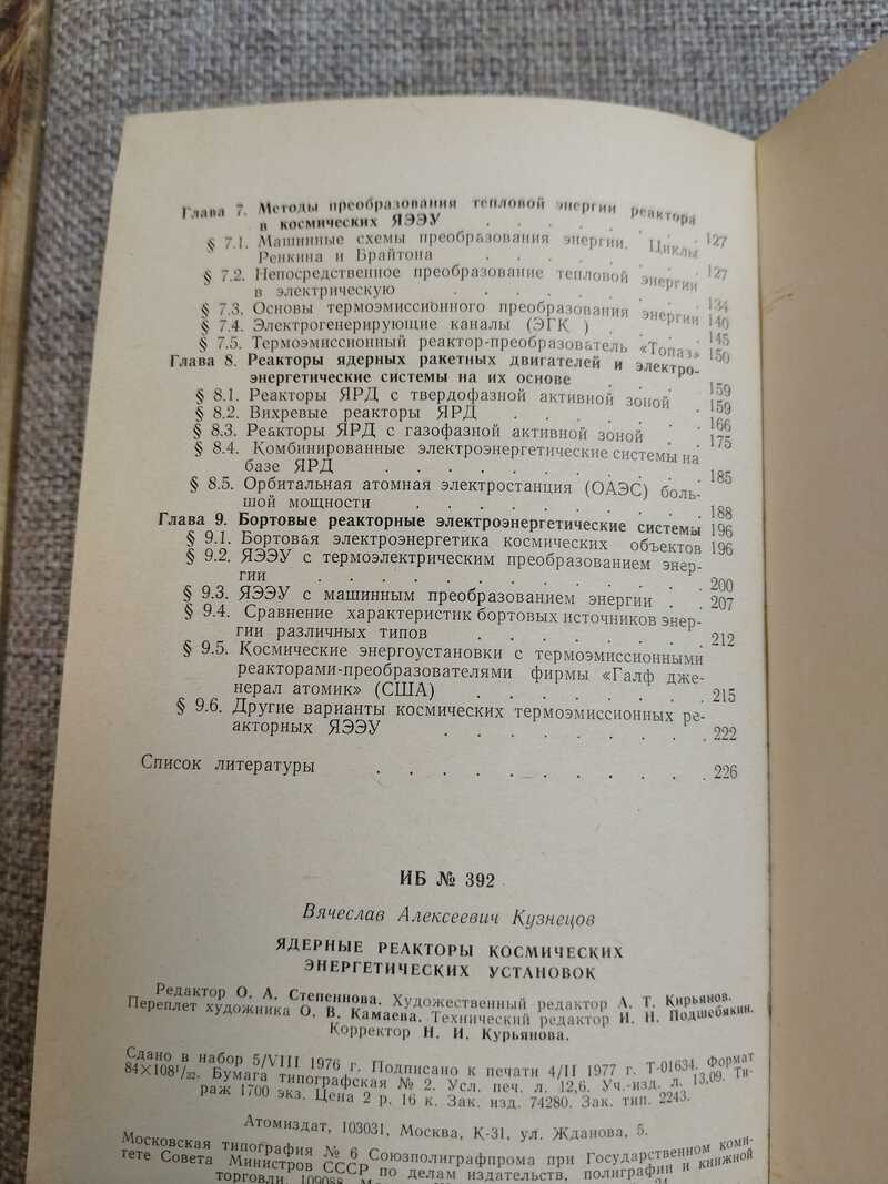 В книге рассматриваются физические особенности ядерных реакторов, исходя из требований, вытекающих из их применения в космических электроэнергетических установках. Анализируются принципы выбора материалов, входящих в состав этих реакторов. Описываются энергетические схемы реакторных ядерных электро-энергетических установок (ЯЭЭУ) с машинным и прямым преобразованием энергии. Показаны перспективы использования реакторных ЯЭЭУ на космических объектах. Приводится краткое описание конкретных проектов ядерных реакторов космического назначения. Тираж 1700 экз.