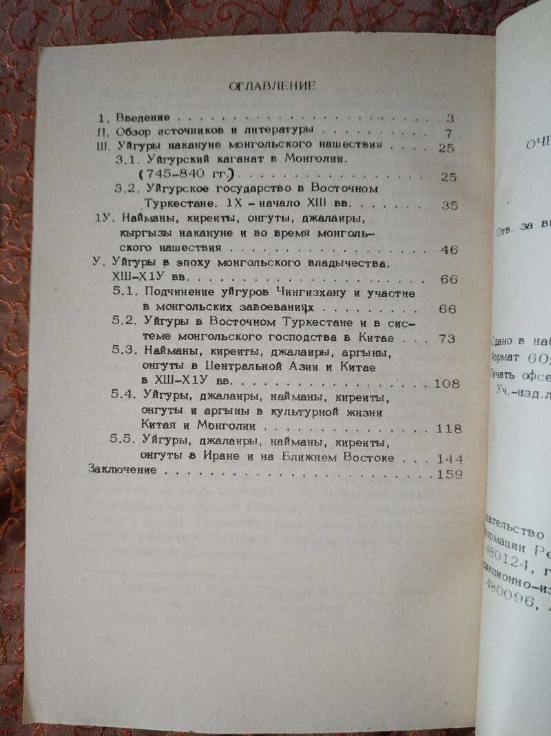 Изучение роли тюркских народностей, в частности, средневековых уйгуров, а также джалаиров, нейманов, онгутов и киреитов, в политической и культурной жизни Центральной Азии, Китая, Ирана накануне и в период монгольского господства Х111-Х1У веков связано прежде всего с тем обстоятельством, что взаимоотношения с соседними народами, в частности, с тюрками, занимали важное место на протяжении длительного периода истории этих стран. Кроме того, история и происхождение этих этносов тесно переплетены друг с другом. Китайские, персидские и восточно-туркестанские исторические труды, официальные и неофициальные, хроники и энциклопедии, географические описания всегда включали сведения о тюркских народах, соседствующих с этими странами или проживающих в них. Особое внимание уделяется эпохе Уйгурского каганата в Монголии (745-840 гг.), Уйгурского государства в Восточном Туркестане, роли уйгуров в военно-политической системе Монгольского государства в XIII-XIV вв. Тираж 1000 экз.