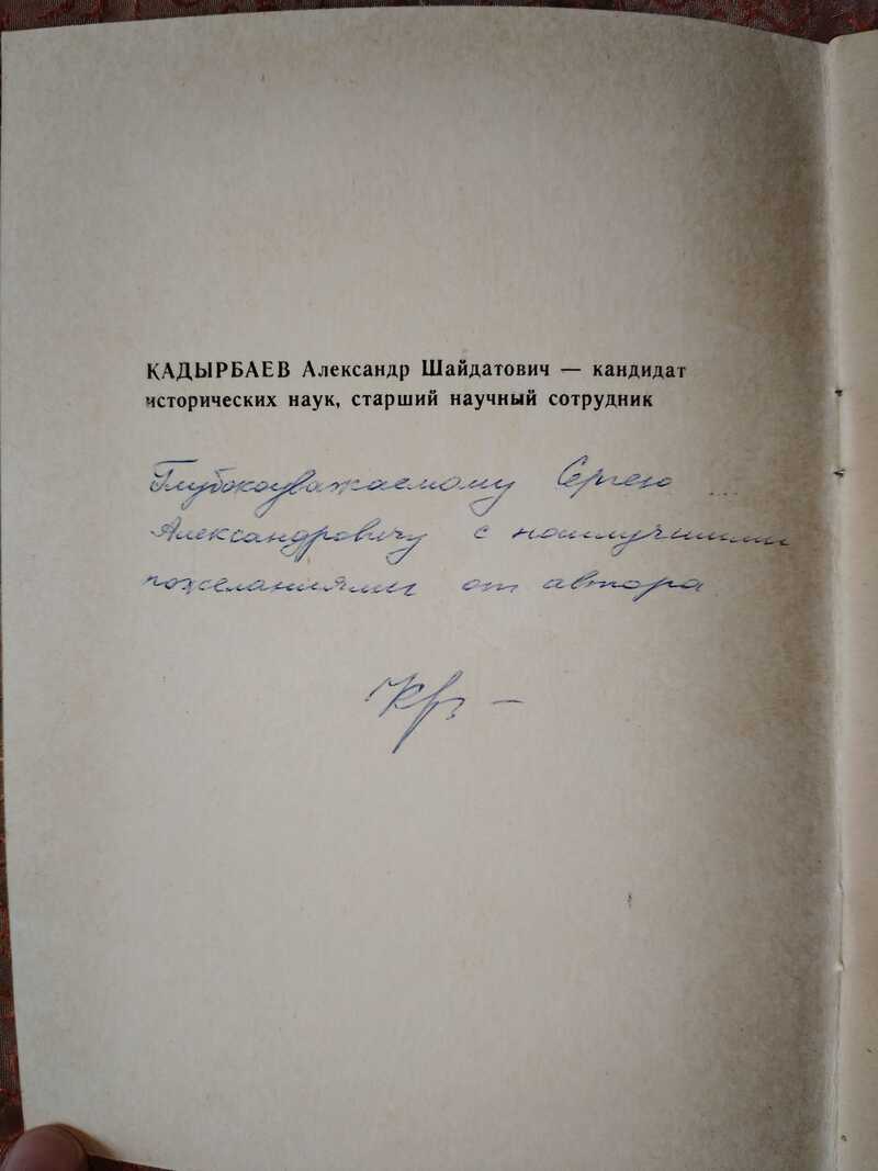 Автограф на книге Казахстан в эпоху Чингиз-хана и его преемников. 12-14 века
