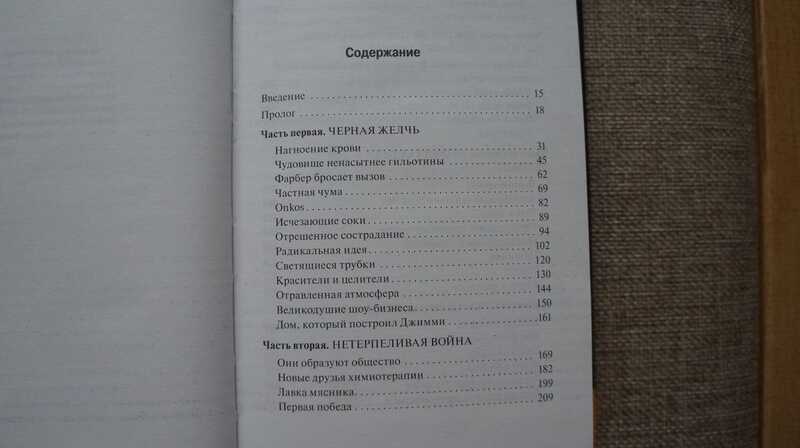 Содержание:Черная желчь; Нетерпеливая война; Доктор, вы прогоните меня, если мне не станет лучше? Профилактика - это лечение; Искаженная версия нас самих; Плоды долгих усилий. Книга Царь всех болезней. Биография рака переведена на 33 языка и удостоена: пулитцеровской премии; премии Пен-клуба как лучшее научно-популярное произведение; премии за исследования в области онкологии; премии New York Times как лучшая книга 2010 года; премии журнала Time как лучшая книга 2010 года. Номинирована на: книжную премию Los Angeles Times; национальную премию литературных критиков США. Топ-100 журнала Time за последние 100 лет!