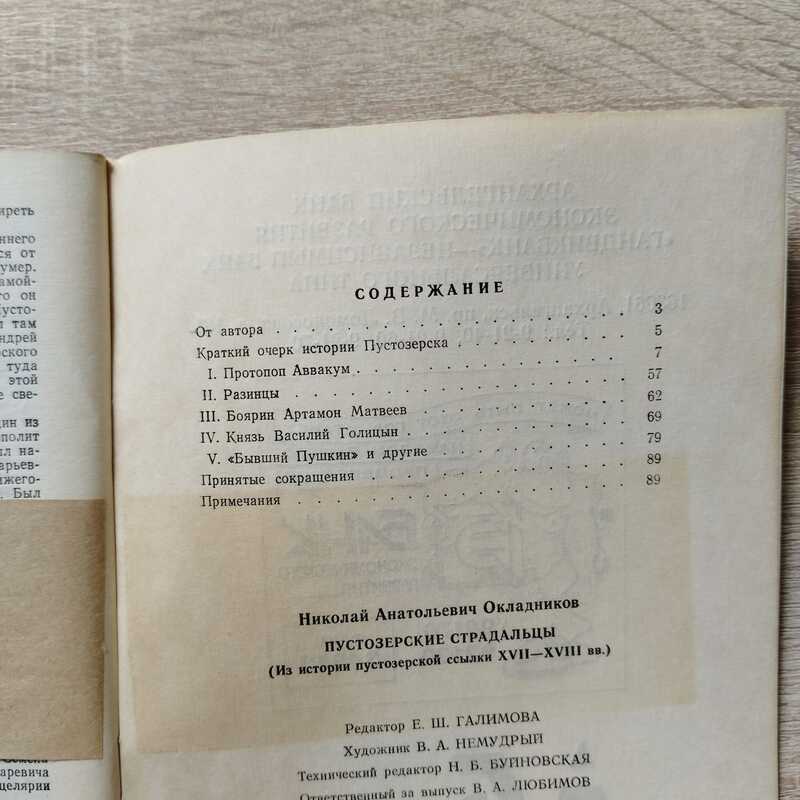В книге краеведа Н.А. Окладникова систематизированы материалы по истории пустозерской ссылки XVII-XVIII вв. Издание носит популярный характер и рассчитано на широкий круг читателя. Содержание: От автора. - Краткий очерк истории Пустозерска. - I. Протопоп Аввакум. - II. Разинцы. - III. Боярин Артамон Матвеев. - IV. Князь Василий Голицын. - V. `Бывший Пушкин` и другие. - Принятые сокращения. - Примечания. Тираж 5020 экз.