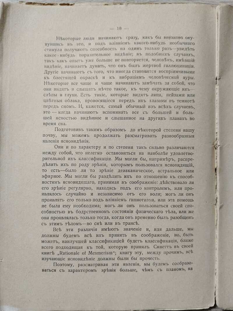Чарльз Уэбстер Ледбитер (1854-1934) - британский оккультист, масон, писатель, один из лидеров Теософического общества, после 1907 г. избирался его президентом, пропагандировал новую Вселенскую религию. В книге описаны различные типы ясновидения, душевные состояния, пути к их контролю и практики, помогающие развить скрытые способности души. Приводится масса примеров природных возможностей отдельных людей прозревать сквозь пространства и время. Автор рассуждает о том, как определить или почувствовать в себе способность к ясновидению. Описаны различные степени и формы визионерства. Среди них простое полное ясновидение, намеренное и полу-намеренное ясновидение в пространстве.