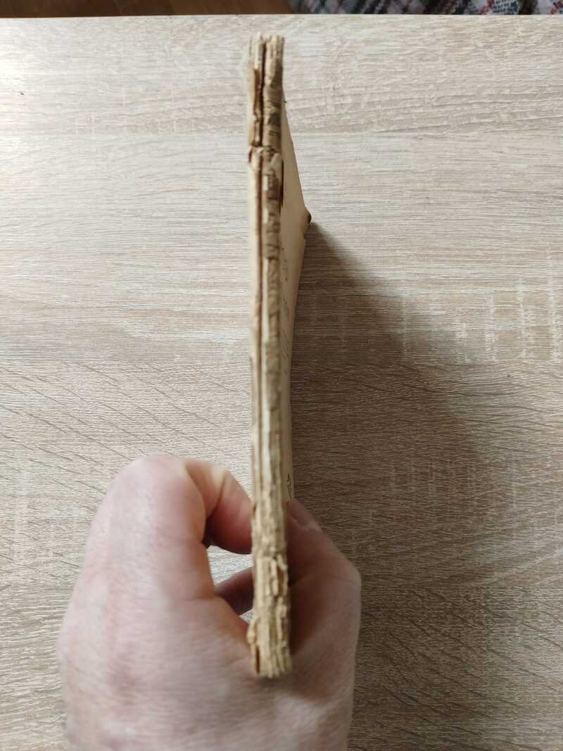Состояние: книжный блок - очень хорошее, надпись на нижнем поле одной страницы; переплет - хорошее(+), аккуратно проклеен скотчем надрыв (17см) задней обложки