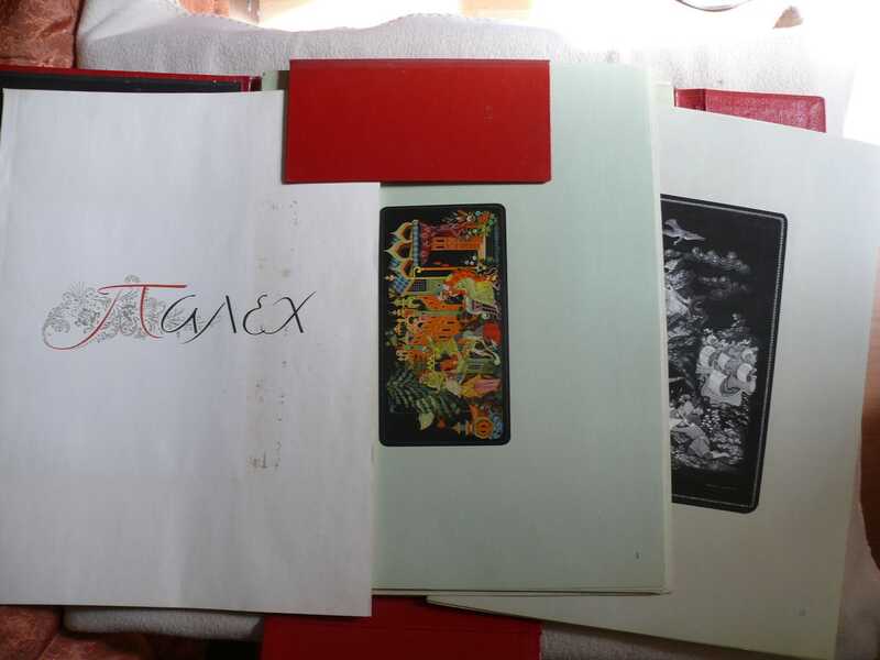 39 красочных репродукции на отдельных листах, выполненных в технике лаковой миниатюры и краткий очерк об искусстве Палеха, изданный на русском, французском и английском языках. Выход издания приурочен к выставке 30 лет искусства советского Палеха, прошедшей в Москве летом 1955 года. Издание вышло в Московской типографии Гознака и было награждено золотой медалью на международной книжной выставке в Лейпциге 1959 г. Палех. Палехская шкатулка.