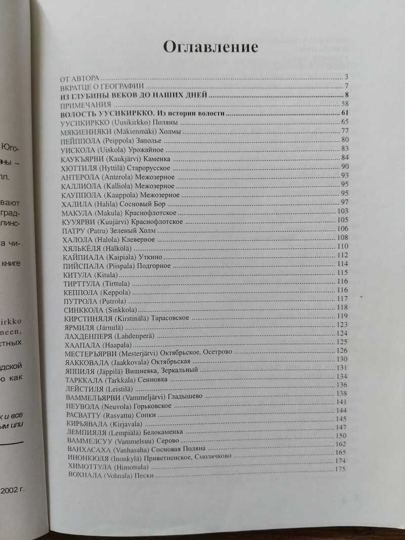 Историко-краеведческие очерки охватывают юго-западную часть Выборгского районоа Ленинградской области: современную Полянскую, Краснодолинскую и Победовскую волость. На титуле карта Шведо-Финляндии. Использованы фотоматериалы из финских изданий, а также из книги П. Невалайнена Изгои и частных коллекций Н. Шмидт-Фогелевича и С. Ренни. Более 60 иллюстраций, редких фотографий. Автор стремится вызывать уважение и симпатию читателя к людям, некогда жившим в Выборгской и Новгородской Карелии на многострадальном Карельском Перешейке и изгнанным с родных мест судьбами военных трагедий и волею державных политиков, начиная со шведских королей... Книга - плод многолетней кропотливой краеведческой работы над материалами литературных, архивных и устных источников из государственных и частных собраний, а также обширных личных наблюдений на территории, судьбой которой автор увлечен и озабочен. Издание богато иллюстрировано архивными фотографиями и картами, рассчитано на смых разнообразных читателей - от школьников и любителей истории до научных работников. Книга предназначена для широкого круга читателей и краеведов.