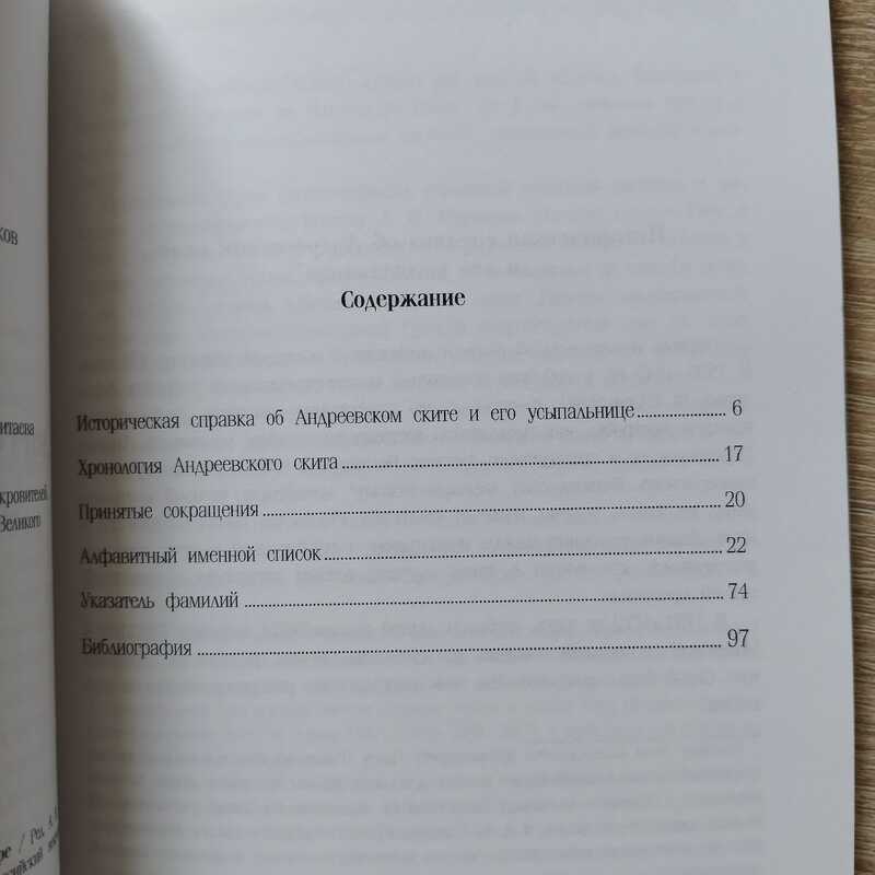 Историческая справка об Андреевском ските и его усыпальнице.- Хронология Андреевского скита.- Принятые сокращения.- Алфавитный именной список.- Указатель фамилий.- Библиография. Тираж 240 экз.