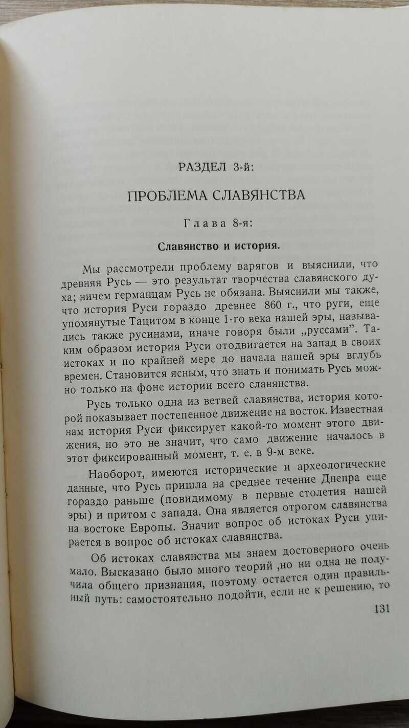 Сергей Яковлевич Парамонов (псевдоним `Сергей Лесной`) (1898 -1968) - русский учeный, орнитолог и энтомолог, писатель в историческом жанре, специалист по истории славянства, который поставил целью своей жизни выяснение истинного происхождения Руси и опровержения официально установленного мнения, что культура на Руси началась лишь с варягами и с византийским влиянием. Последняя книга автора, жившего в Австралии, автора многотомных трудов по истории Древней Руси и исследователя `Слова о Полку Игореве`. Эта книга издана на средства автора в Канаде. Содержание: Проблема варягов. О неверном понимании летописей. Существовало ли германское племя `Русь`? О косвенных доказательствах норманистов. Проблема начала Руси. Известия о руссах до 9 века. Известия о руссах 9 века. Проблема славянства. Славянство и история. В поисках предков славян. Проблема готов. Проблема гуннов. Проблема славянской письменности. Зачаточная письменность славян. Происхождение глаголицы. Происхождение кириллицы и ее вариантов. Проблема `Влесовой Книги`. Что мы знаем о `Влесовой Книге`. Еще о `дощечках Изенбека`. История руссов согласно `Влесовой Книге`. Что представляла собой религия древних русов. Советская наука и история Древней Руси. История борьбы антинорманизма с норманизмом. Норманисты Запада после войны. Редкость по Савину.