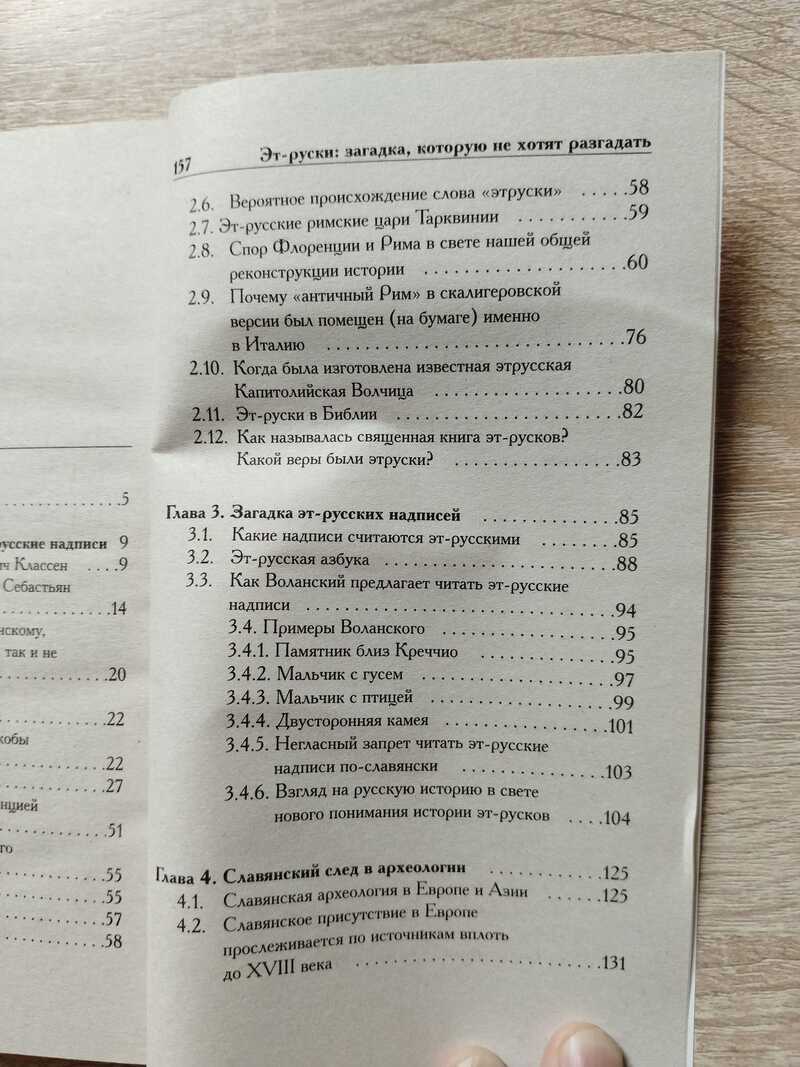 В очередной книге Малого ряда авторы рассказывают об одном из наиболее тщательно скрываемых камней преткновения исторической версии Скалигера-Петавиуса так называемой «загадке этрусской письменности». Напомним, что этрусками историки называют древнейшее население Италии, существовавшее там еще задолго до возникновения «античного» Рима. Усилиями замечательных ученых XIX века С. Чьямпи, А.Д. Черткова и этрусские надписи уже давно прочитаны и истолкованы. Оказывается, они написаны ПО РУССКИ. Это прекрасно соответствует Новой хронологии и реконструкции истории Фоменко-Носовского. В книге рассказано также о малоизвестных трудах замечательного русского ученого и писателя начала XIX века Алексея Степановича Хомякова. В работах которого высказывается мысль о сравнительно недавнем славянском присутствии в Западной Европе. Выводы Хомякова прекрасно согласуются как со славянским прочтением этрусских надписей, так и с поздне-средневековой датировкой этрусков в Новой хронологии.