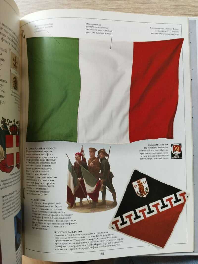 На красочных страницах этой книги перед вами предстанут геральдические знамена, старинные штандарты и государственные флаги 160 стран. Рассмотрите их во всех подробностях! Вы увидете вексиллум римских легионеров, геральдическое знамя и герб Уинстона Черчилля, стяг наполеоновской гвардии, флаг дервиша. Вы узнаете когда поднимают `флаг учтивости`, что такое скандинавский крест, как появился символ «восходящего солнца». Вы поймете почему на старинных голландских флагах изображена шляпа на шесте, чем говорят звезды на флагах Австралии, Китая и США и многое, многое другое. Вес 430 г.
