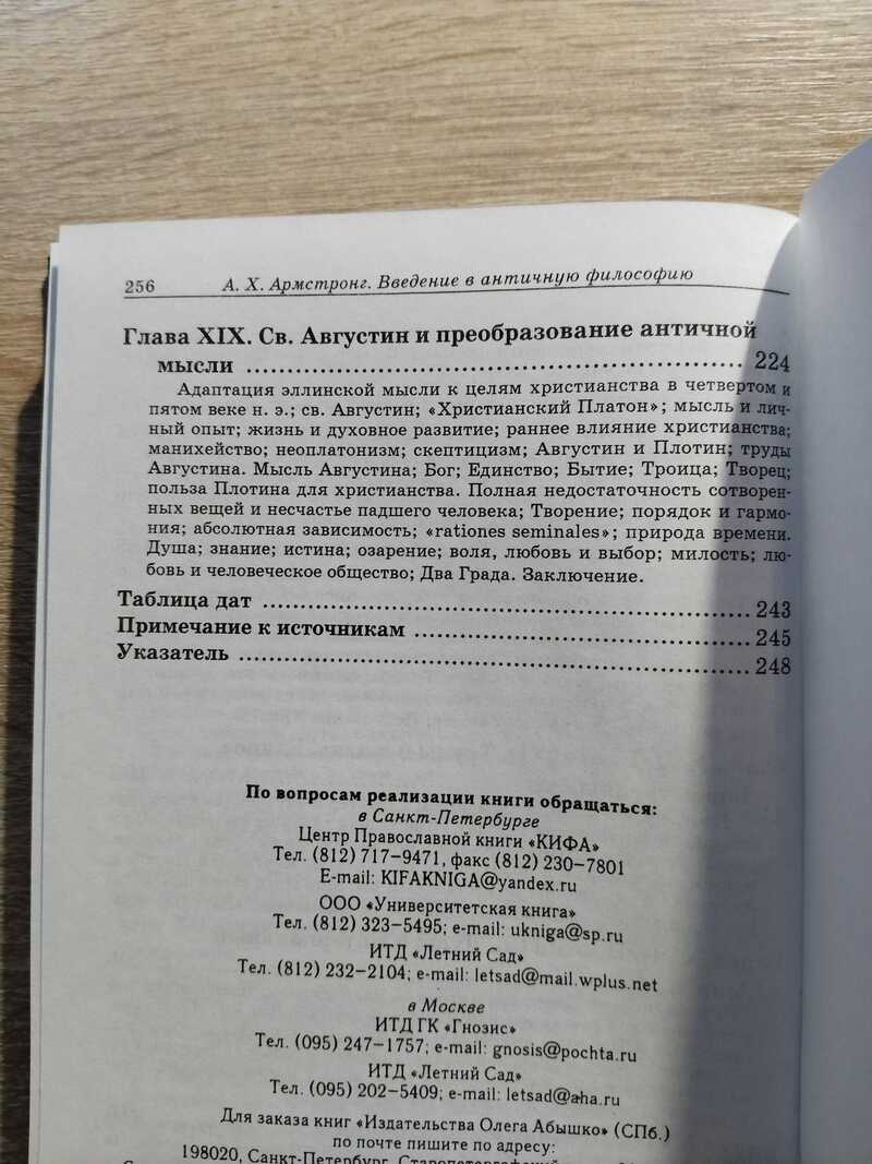 Книга известного английского историка философии Артура Хилари Армстронга «Введение в античную философию...» основана на лекциях, прочитанных им в философском обществе Newman Association в 1943 году. В ней автор обращается к истокам христианской мысли, которые он видит в языческой философии и, прежде всего, у Сократа, Платона, Аристотеля и Плотина. Основное внимание Армстронг уделяет философским исканиям античности, непосредственно примыкающим к «ведению» христианского богословия, а именно: развитию учения о Логосе от Гераклита до Плотина, учению Сократа о душе как разумной личности, теории Идей и теологии Платона, метафизике Аристотеля и философии неоплатонизма. Будучи преддверием полного курса схоластической философии, данный труд предлагает рассмотрение античной мысли сквозь призму философии средневековья и по этой причине автор тщательно анализирует понятие «Бог» в отношении практически всех рассматриваемых им философских направлений древности. Представляет интерес и тот факт, что книга об античной философии заканчивается величественной фигурой христианского мыслителя Блаженного Августина. Это не случайно, поскольку своей задачей Армстронг видел демонстрацию весьма сложного перехода от философии язычества к христианскому богословию. 1.000 экз.
