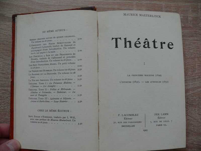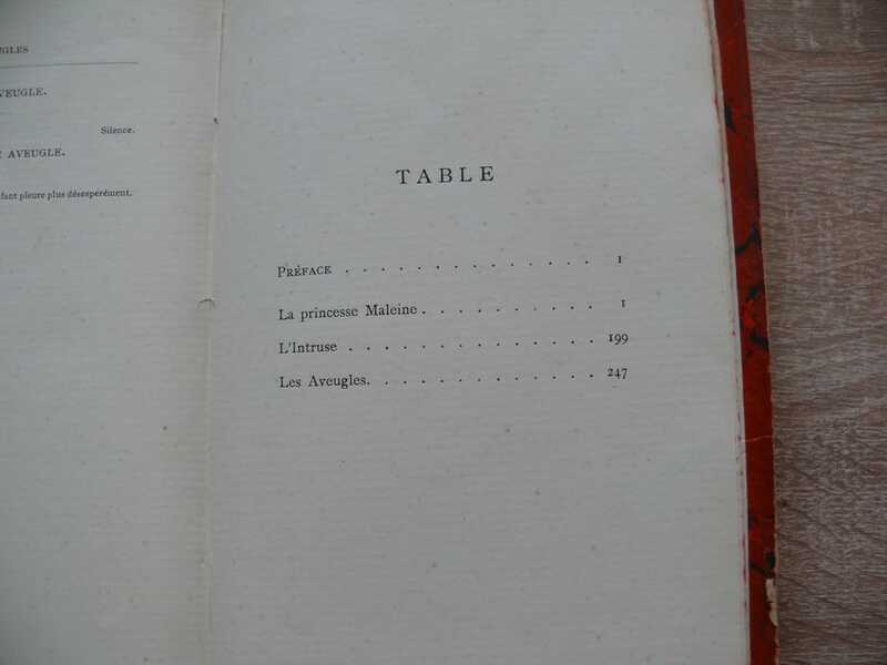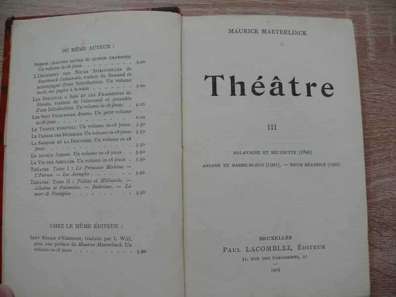La Princesse Maleine. Les Aveugles. L'Intruse Vol. 2 Pelleas and Melisand. Alladine and Palomides, Interior, and The death of Tintagiles. Vol. III Aglavaine and Selysette. Ariane et Barbe Bleue. Soeur Beatrice