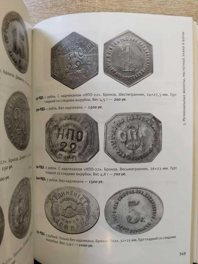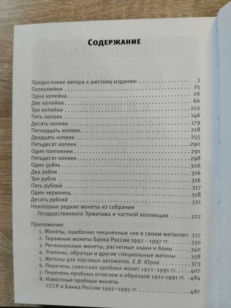 Новое 6 издание содержит актуальные на текущий момент цены на разновидности монет СССР и Банка России (1992-1995). Кроме того, добавлен раздел пробных советских монет, образцов и оттисков-макетов периода 1921-1991 гг., а также пробных монет 1992 года и пробных монет Банка России 1992 и 1995 гг. с обозначением ориентировочной редкости монет. Подробное описание. В предисловии автора к изданию дан краткий обзор истории коллекционирования монет советского чекана, приведены принципы структурной классификации каталога и конкретизировано понятие штемпельной разновидности монет. Для коллекционеров предоставлена простая и удобная система отметки наличия и степени сохранности монет своего собрания непосредственно в самом каталоге. Наряду с общим описанием в книге приведены изображения таких редчайших монет советского чекана, как серебряные гривенник и пятиалтынный с датой 1931 года, медный рубчатый пятикопеечник 1924 года, находящиеся в собрании Государственного Эрмитажа. В разделе приложение по пунктам рассмотрены: 1. Перечень тиражных советских монет «не в своем металле», дополненный и исправленный, с указанием степени редкости встречаемости монет. 2. Тиражные монеты банка России 1992–1997 гг, с указанием цен и редкости их встречаемости. 3. Основные региональные монеты, металлические расчетные знаки и боны советского периода, с обозначением степени редкости и ориентировочной стоимости. 4. Эталоны образцы и другие специальные жетоны идентичные по технологическим параметрам тиражным монетам СССР и России (металл, вес, диаметр, гуртовка), с обозначением степени редкости и ориентировочной стоимости. 5. Каталог жетонов торговых автоматов НКВТ и МинТорга, дополненный и исправленный, с указанием цен и редкости встречаемости, за авторством Е.В.Юрова. 6. Приведен обновленный иллюстрированный перечень пробных советских монет, образцов и оттисков-макетов периода 1921-1991 гг., а также пробных монет 1992 года и пробных монет Банка России 1992 и 1995 гг. с обозначением ориентировочной редкости монет. Добавлен цикл современных статей по профильным исследованиям нумизматики советского периода 1921-1991 гг. В заключение приведен каталог монетовидных жетонов Российской Федерации 1991–2015 гг. выпущенных фирмой «МастерВижн», с указанием цен и редкости их встречаемости, за авторством Е.В.Юрова. Безусловно данный вариант VI-го издания послужит отличным современным справочным пособием для всех коллекционеров отечественных монет, жетонов и металлических бон.