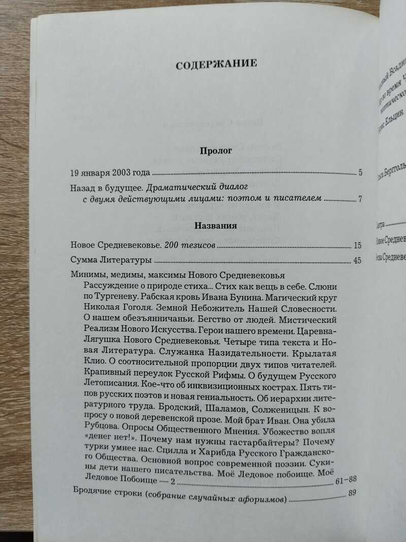 7 февраля увидел свет труд: «Новое Средневековье. Книга Названий», - в который входят теория и практика Новой Литературы (и не только литературы), а именно: стихотворение «19 января 2003 года», драматический диалог «Назад в будущее», 200 тезисов Нового Средневековья, Сумма Литературы, Минимы, медимы, максимы Нового Средневековья (числом 33), Слюни по Тургеневу, Рабская кровь Ивана Бунина, Магический круг Николая Гоголя, «Бродячие строки» (100 афоризмов), цикл произведений под названием «Прощание с Пушкиным» (куда вошли: поэма «Медный Всадник – 2», драмсцены «Пир во время Чумы – II» и «Борис Ельцин»); цикл стихов «Прекрасная Дама Советской Поэзии» (об Ольге Берггольц), а также стихотворения «Завтра», «Весна Средневековья» и литнатюр «Живое Средневековье». Какова цель Первого Литературного Крестового Похода? Назвать вещи своими именами. Те, кто ждет от меня заклинаний типа: «у нас нет литературы» - ошибется. У нас есть истинная литература, но она пребывает в подполье; зато та, которая должна находиться на задворках, т.е. литература ложная, царит на словесном Олимпе. После того, как вещи будут названы такими, как есть, мы явим публике первых крестоносцев Новой Литературы. Сколько же всего будет Крестовых походов? – Бог весть. Но если нам удастся хотя бы на миг прервать козлиное блеяние над святынями (которое и называется сегодня литераторством), миг этот потомки нарекут величайшим в русской литературной истории. Итак, да славится тишина! Тишина перед битвой. Из Манифеста В. Улыбина. Тираж 200 экз.