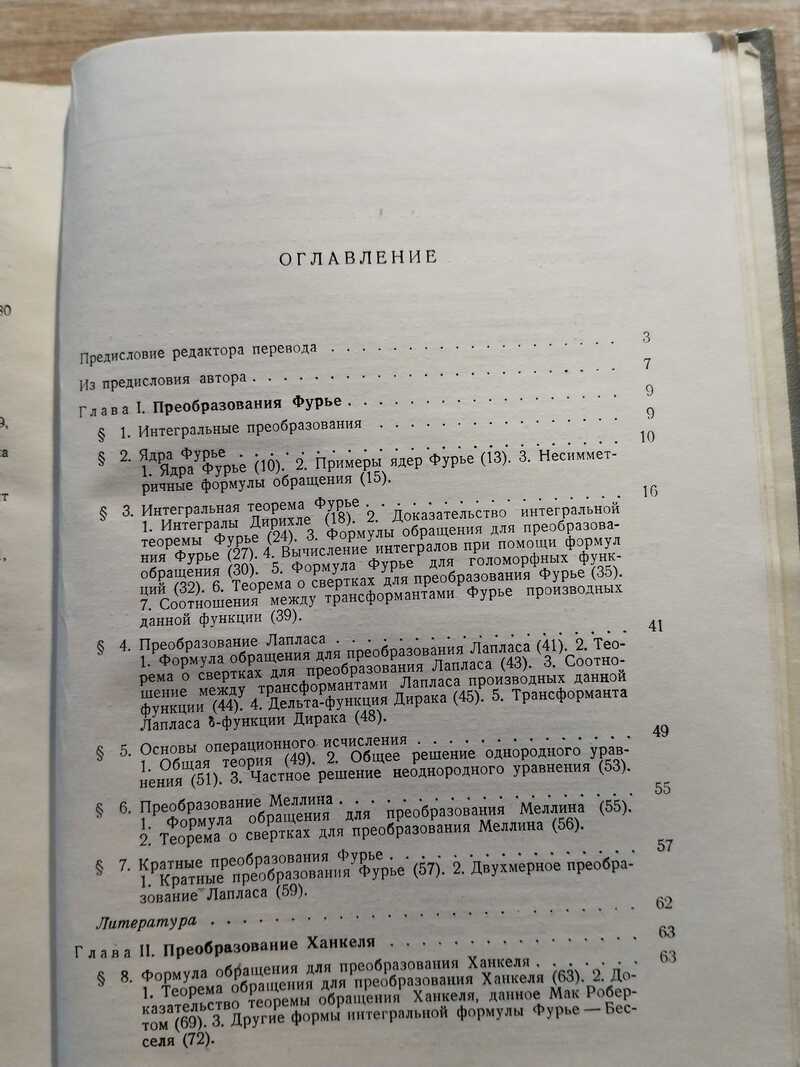 Книга И. Снеддона `Преобразования Фурье` содержит ряд приложений метода интегральных преобразований к самым разнообразным краевым задачам математической физики. В ней рассматриваются очень важные задачи из теории колебаний, теплопроводности, гидродинамики, теории упругости, атомной физики и теории замедления нейтронов в веществе. К числу преобразований Фурье автор относит, помимо специального преобразования Фурье, также преобразования Лапласа, Меллина и Ханкеля. В книгах, посвященных операционному исчислению, обычно рассматривается только преобразование Лапласа или же специальное преобразование Фурье, а в качестве приложений даются сравнительно простые задачи из теории электрических колебаний, механики и теплопроводности. В книге же Снеддона, кроме преобразований Лапласа и Фурье, изложены также основные свойства преобразований Меллина, Ханкеля и соответствующих преобразований с конечными пределами. В первых трех главах приводится краткая теория этих преобразований, доказываются теоремы обращения, теоремы умножения (теоремы о свертках), теоремы об изображениях производных и излагается теория дуальных интегральных уравнений. Четвертая и пятая главы содержат приложения к теории колебаний и теплопроводности. В шестой главе излагается теория замедления нейтронов в веществе, причем все рассматриваемые задачи решаются при помощи преобразования Лапласа. В седьмой главе преобразования Фурье и Ханкеля применяются к решению различных краевых задач гидродинамики. Восьмая глава посвящена приложениям к атомной и ядерной физике. В качестве основного метода здесь применяется преобразование Лапласа. Девятая и десятая главы содержат различные краевые задачи теории упругости на плоскости и в пространстве.