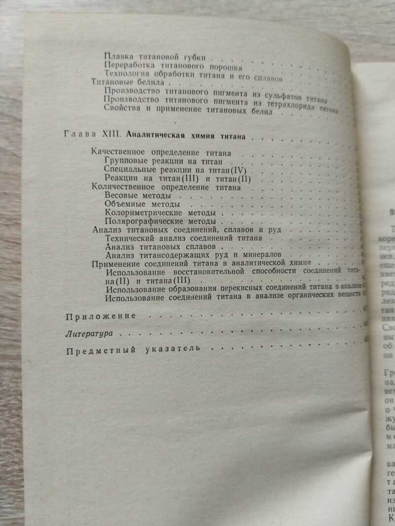 В книге описаны химические и физические свойства элементарного титана, его простых и комплексных соединений, сырьевые источники и способы получения, а также методы анализа титана и его соединений и сплавов, освещены вопросы применения их в народном хозяйстве. Монография рассчитана на широкий круг химиков - научных работников, инженеров, преподавателей, аспирантов, студентов старших курсов, специализирующихся по неорганической химии.