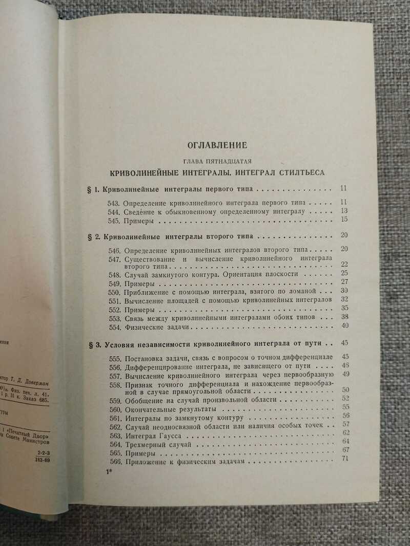 Курс дифференциального и интегрального исчисления является фундаментальным учебником по математическому анализу. Первое издание трехтомного `Курса...` вышло в 1948-1949 гг. Книга выдержала множество переизданий, переведена на различные иностранные языки. Отличается систематичностью и строгостью изложения, простым языком, подробными пояснениями и многочисленными примерами. Высоко ценится математиками как уникальная коллекция различных фактов анализа, часть которых невозможно найти в других книгах на русском языке. В первом томе рассказывается о теории пределов, функции одной переменной, производных и дифференциалах, исследовании функции с помощью производных, функциях нескольких переменных, функциональных определителях и их приложениях, приложении дифференциального исчисления к геометрии, задаче распространения функций. Учебник предназначен для студентов университетов, педагогических и технических вузов, а также математиков, физиков, инженеров и других специалистов, использующих математику в своей работе математику в своей работе. Третий том содержит подробное изложение таких разделов дифференциального и интегрального исчисления, как теория кратных, криволинейных и поверхностных интегралов, элементы векторного анализа, теория функций ограниченной вариации и интеграл Стилтьеса, ряды и интегралы Фурье.