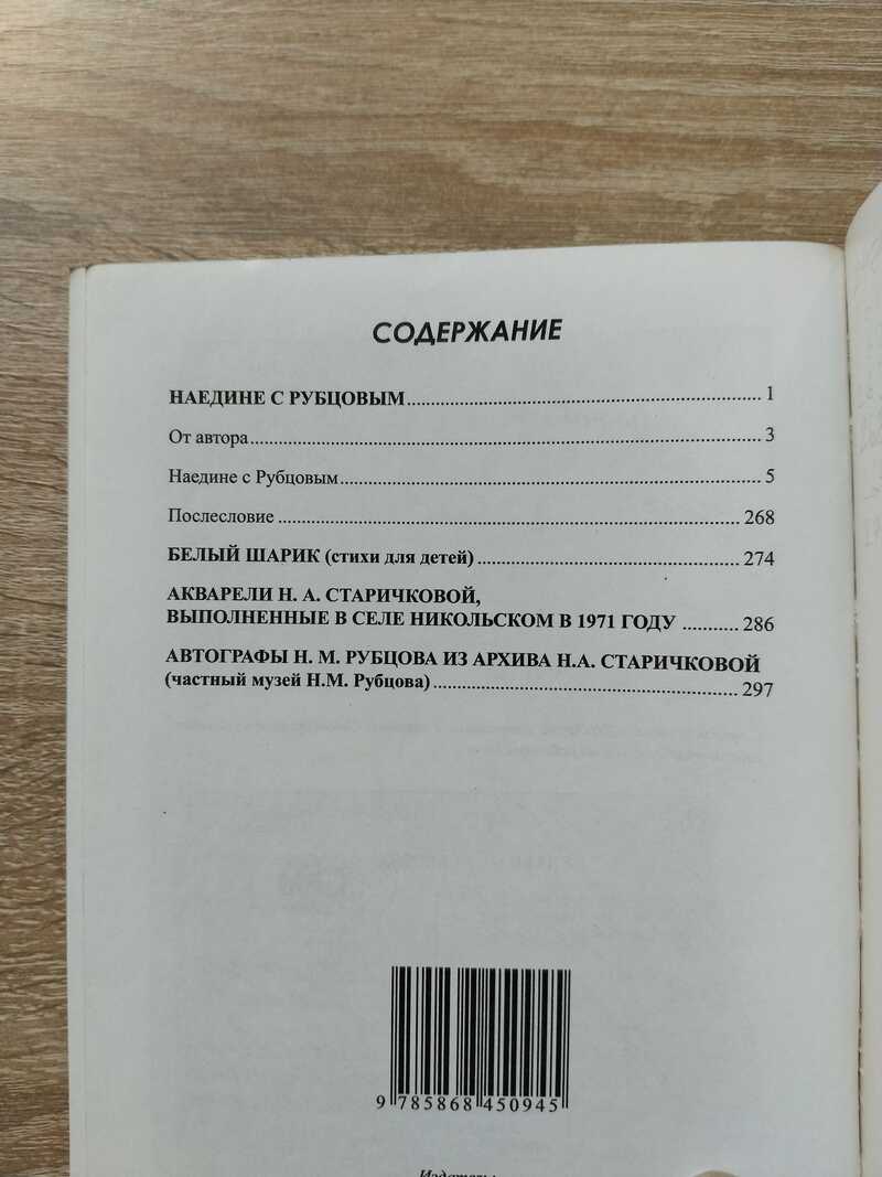 Нинель Александровна Старичкова родилась в с.Никольский Торжок Вологодской области. После окончания Фельдшерско-акушерской школы работала в медицинских учреждениях г.Вологды и в районе освоения целинных земель в Казахстане (1955 - 1958 гг). С 1968 года работала литсотрудником в многотиражной газете `За трудовые успехи`, а затем редактором газеты `За кадры` и `Вологодский текстильщик`. В 1996 году издан сборник стихов `Черемушкино диво`, а в 2000-м году - стихи для детей `Белый шарик`. Работа над воспоминаниями о поэте Николае Рубцове велась со дня его трагической гибели в 1971 году и все последующие годы. Фрагменты печатались в областных газетах, журнале `Русская провинция`. В конечном варианте документальная повесть `Наедине с Рубцовым` была опубликована в `Профсоюзной газете` в 1998 году и отдельным изданием (г.Вологда) в 2001. Содержание:Наедине с Рубцовым,Белый шарик (стихи для детей), Акварели Н. А. Старичковой, выполненные в селе Никольском в 1971 году, Автографы Н. М. Рубцова из архива Н.А.Старичковой (частный музей Н. М. Рубцова)