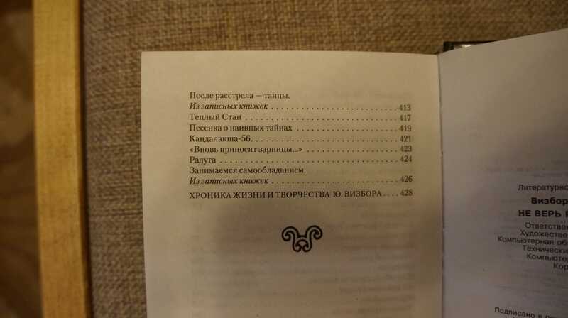 Эта книга выходит в год семидесятилетия со дня рождения знаменитого барда, одного из основоположников русской авторской песни XX века Юрия Визбора. Хотя после кончины автора прошло двадцать лет, его произведения не забылись - они по-прежнему звучат по радио и телевидению, поются в дружеских компаниях и экспедициях, в альплагерях и туристских походах. В книге представлены наиболее известные и популярные песни и стихи разных лет. Включены также фрагменты записных книжек автора.