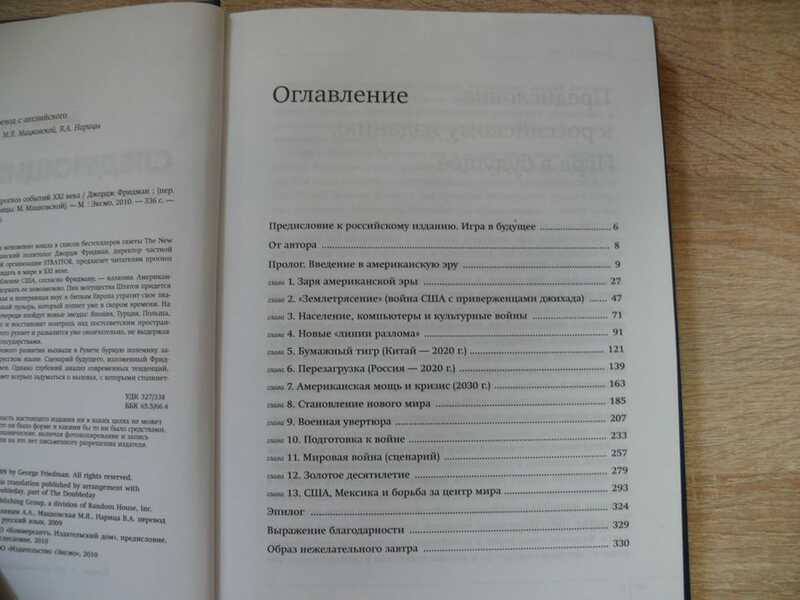 Эта провокационная книга мгновенно вошла в список бестселлеров газеты The New York Times. Ее автор, американский политолог Джордж Фридман, директор частной разведывательно-аналитической организации Stratfor, предлагает читателям прогноз изменений, которых можно ожидать в мире в XXI веке. Нынешнее кажущееся ослабление США, согласно Фридману, - иллюзия. Американская мощь столь велика, что подорвать ее невозможно. Пик могущества Штатов придется на конец XXI столетия. Безвольная и потерявшая вкус к битвам Европа утратит свое значение. Китайский рост - мыльный пузырь, который лопнет уже в скором времени. На геополитическом горизонте по очереди взойдут новые звезды: Япония, Турция, Польша, Мексика. Россия добьется своего и восстановит контроль над постсоветским пространством в 2020-е годы, но после этого рухнет и развалится уже окончательно, не выдержав конкуренции с более сильными государствами.