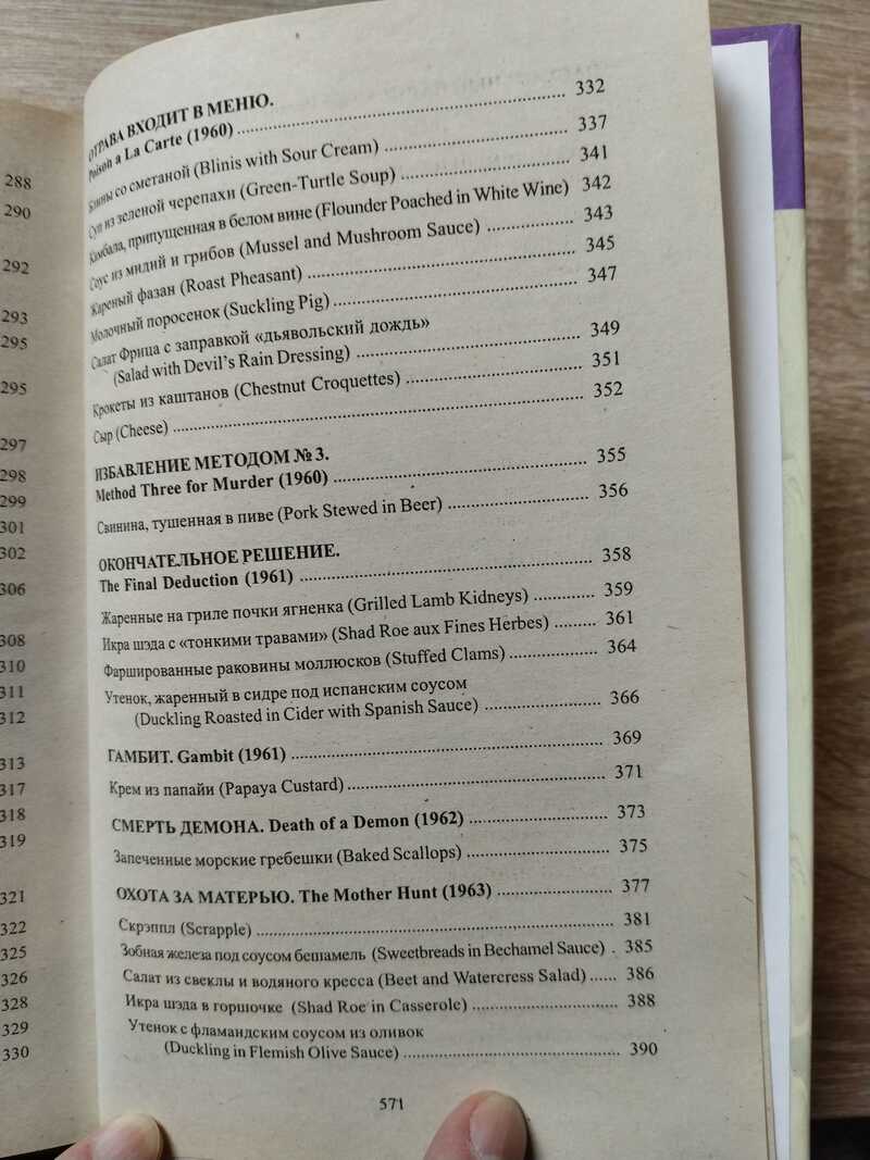 Развернутый автограф И. Лазерсона, данный на автограф-сессии. Занимательное, поучительное, живое пособие по интернациональной кулинарии, в котором приведены рецепты блюд, взятых из историй о Ниро Вульфе, великом сыщике и величайшем чревоугоднике. Вы убедитесь, что они не так сложны по составу ингредиентов и технологии приготовления, как их интригующе-загадочные названия. Так что попробуйте приобщиться к кулинарным тайнам повара Фрица Бреннера и разнообразьте ваше меню новыми блюдами. Тираж 8 000.