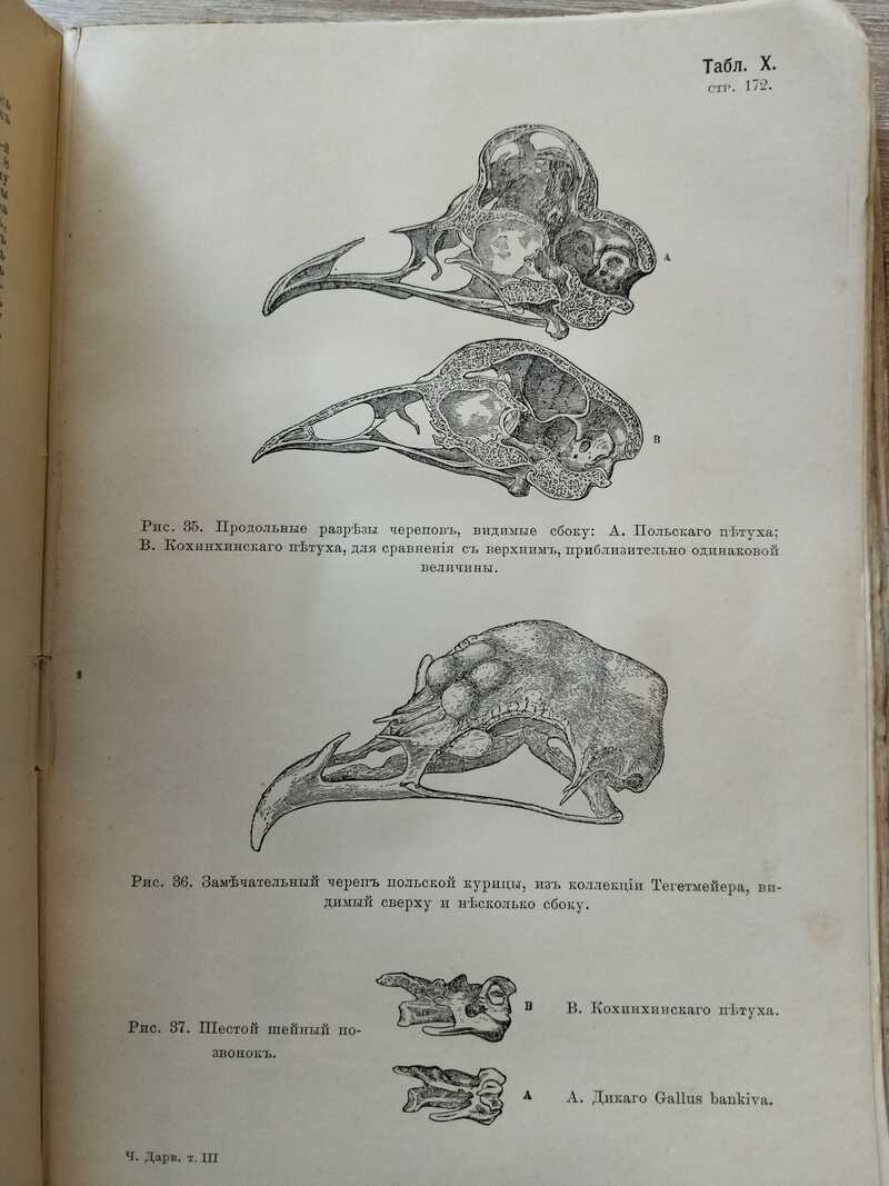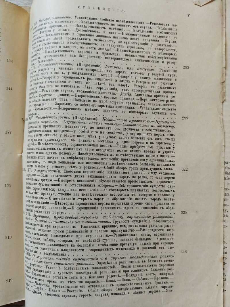 Содержание: Введение. - Глава I. Домашние собаки и кошки. - Глава II. Лошади и ослы. - Глава III. Свиньи. Рогатый скот. Овцы. Козы. - Глава IV. Домашние кролики. - Глава V. Домашние голуби. - Глава VI. Голуби (продолжение). - Глава VII. Куры. - Глава VIII. Утки. Гуси. Павлины. Индюки. Цесарки. Канарейки. Золотые рыбки. Пчелы. Шелковичные черви. - Глава IX. Возделанные растения: хлебные злаки и огородные овощи. - Глава Х. Растения (продолжение). Плоды. Деревья, служащие украшением (орнаментные). Цветы. - Глава XI. О почковом видоизменении и некоторых аномалиях в воспроизведении и видоизменении. - Глава XII. Наследственность. - Глава XIII. Наследственность (продолжение). Реверсия, или атавизм. - Глава XIV. Наследственность (продолжение). Постоянство признаков. Преимущественная передача. Ограничение одним полом. Соответствие по возрасту. - Глава XV. О скрещивании. - Глава XVI. Причины, противодействующие свободному скрещиванию разновидностей. Влияние одомашнения и плодовитость. - Глава XVII. О хорошем влиянии скрещивания и о дурных последствиях размножения в близких степенях родства. - Глава XVIII. О пользе и вреде перемены в условиях существования: бесплодие от разных причин. - Глава XIX. Обзор четырех последних глав с заметками о гибридизме. - Глава XX. Отбор человеком. - Глава XXI. Отбор (продолжение). - Глава XXII. Причины изменчивости. - Глава XXIII. Прямое и определенное действие внешних условий существования. - Глава XXIV. Законы изменчивости. Употребление и неупотребление и т.д. - Глава XXV. Законы изменчивости (продолжение). Соотносительная, или сопряженная изменчивость. - Глава XXVI. Законы изменчивости (продолжение). Общий обзор. - Глава XXVII.Пангенезис - временная гипотеза. - Глава XXVIII. Общее заключение.