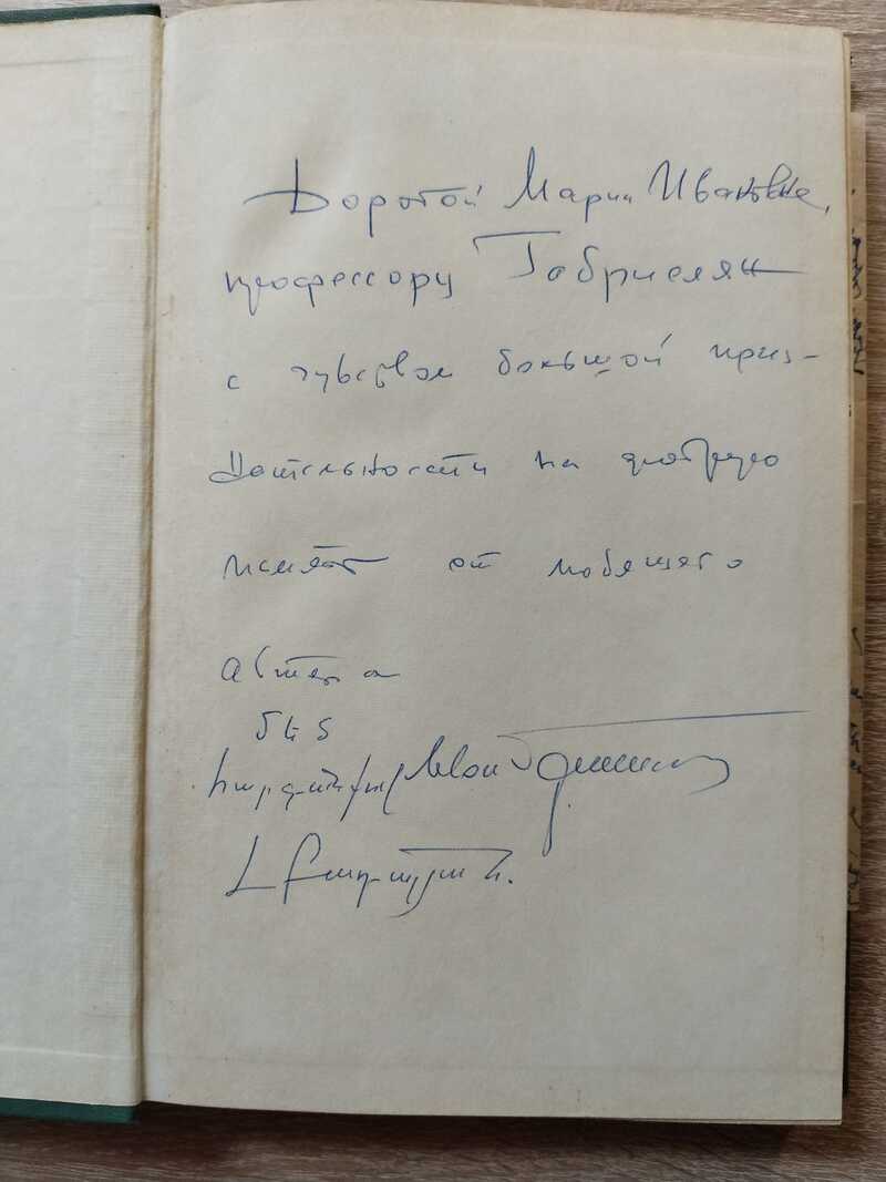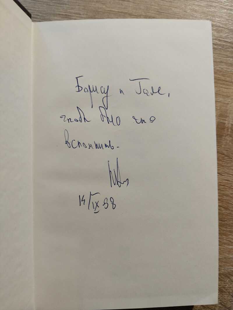 В книгу вклеена оригинальная фотография автора, а также вложены письма и дарственная его жены.