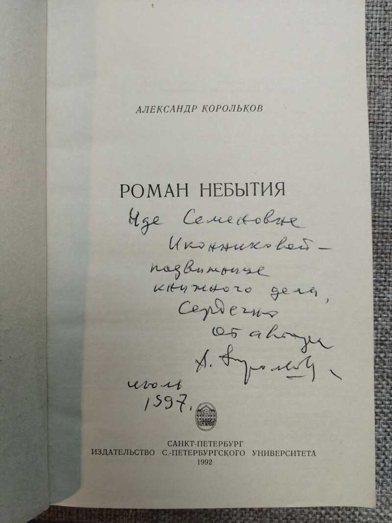 Автограф автора на книге Роман небытия