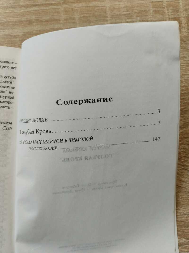 Маруся Климова - одна из самых загадочных фигур отечественной культуры конца 90-х. Ажиотаж вокруг ее имени кажется, особенно непостижимым на фоне подчеркнуто элитарных тиражей полубогемных изданий ее книг. В предлагаемую вниманию читателя книгу вошел самый знаменитый роман Маруси Климовой. `Голубая кровь` - первый роман писательницы, написанный в 1991 году, был издан лишь в 1996 году тиражом всего 100 экземпляров (переиздание в 1999 году - 500 экземпляров), однако резонанс, вызванный им в читательской среде, сопоставим разве что с тем, какой вызывали книги, ходившие по рукам во времена `самиздата`. Критика наградила его эпитетами `мгновенной классики` и `самого пронзительного питерского дебюта со времен Достоевского`... События романа `Голубая кровь` разворачиваются в период с 1987 по 1991 год. Это эпос, сатира и трагедия одновременно. Роман повествует о жизни `задержанного` поколения. Прекрасные никчемные принцы голубой крови, стареющие юноши, приятели юношей, болтуны и сплетники, картины упадка и разрушения `последней империи` оживают под пером Маруси Климовой, напоминают нам о недавнем прошлом, о рухнувших надеждах и попранных чувствах... Впрочем, давно уже не секрет, что под этим псевдонимом пишет блестящая переводчица Жана Жене и Селина - Татьяна Кондратович, жена философа и переводчика Вячеслава Кондратовича. Перевела с французского произведения Л.-Ф. Селина («Смерть в кредит», «Из замка в замок», «Север», «Ригодон», «Интервью с профессором Y», «Громы и молнии: пьесы, либретто, сценарии»), Жана Жене («Кэрель»), Пьера Гийота («Проституция», «Эдем, Эдем, Эдем», «Кома», «Книга»), Жоржа Батая («История глаза»), Моник Виттиг («Лесбийское тело»), Пьера Луиса («Дамский остров»), Луи Арагона («Лоно Ирены»), Франсуа Жибо («Собакам и китайцам вход воспрещен», «Не все так безоблачно»), Пьера Буржада, Мишеля Фуко и др.. Также является автором русских переводов книги Д. фон Гильдебрандта «Святость и активность» (с немецкого) и «Символического пейзажа» Кеннета Кларка (с английского).