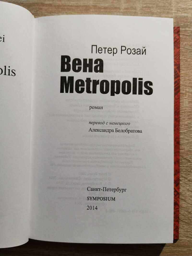 Петер Розай (р. 1946) — одна из значительных фигур австрийской литературы последней трети ХХ века, автор более пятнадцати романов: «Кем был Эдгар Алан?» (1977), «Отсюда туда» (1978, рус. пер. 1982), «Будь счастливым!» (1980), «Мужчина женщина» (1984, рус. пер. 1994), «Персона» (1995), «15 000 душ» (1985, рус. пер. 2006), «Глобалисты» (2014), нескольких сборников прозы: «Этюд о мире без людей. Этюд о путешествии без цели» (1980), путевых очерков: «Стрелы в полете» (1993), «Петербург- Париж - Токио» (2000). Свидетельством признания явилось, в частности, присуждение ему престижных литературных премий: в 1993 г. - имени Франца Кафки, которого Розай считает одним из своих главных учителей. Роман «Вена Metriopolis» (2005) – путешествие во времени (вторая половина ХХ века), в пространстве (Вена, столица Австрии) и в судьбах населяющих этот мир людей: лицо города складывается из мозаики «обыкновенных» историй, проступает в переплетении обыденных жизненных путей персонажей, «ограниченных сроком» своих чувств, стремлений, своего земного бытия.