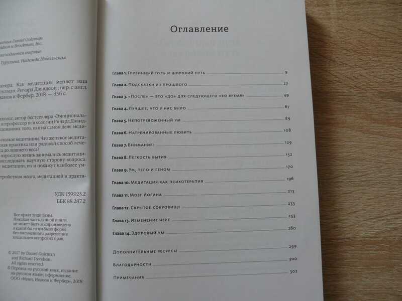 Автор бестселлера «Эмоциональный интеллект» Дэниел Гоулман и профессор психологии Ричард Дэвидсон рассказывают о новых исследованиях. Вы узнаете, как на самом деле медитация влияет на ваш мозг. Опыт многих людей вселяет веру в пользу медитации. От некой передовой таинственной практики медитация перешла к рядовому способу лечения всего что угодно — от стресса до лишнего веса. Авторы этой книги занимались медитацией всю взрослую жизнь и знали, что она имеет большие преимущества, но, будучи учеными, решили исследовать научную сторону вопроса. Не все то, что приписывается волшебным свойствам медитации, на самом деле выдерживает жесткие испытания наукой. Возможно, вы знаете о медитации неверные вещи и не знаете правды. Первоначальная цель медитации, признаваемая сегодня в определенных кругах, заключается в глубоком изучении разума ради полного изменения внутреннего «я». С другой стороны, прагматическое применение медитации, например в практике осознанности, распространяется в ширину, но не в глубину. Сегодня многие люди включили хотя бы небольшие сеансы медитации в свою повседневную жизнь. Таким образом, существует две тропы — глубинная и широкая. Их зачастую путают, несмотря на огромные различия. Из этой книги вы узнаете обо всех аспектах и уровнях каждой из этих троп.
