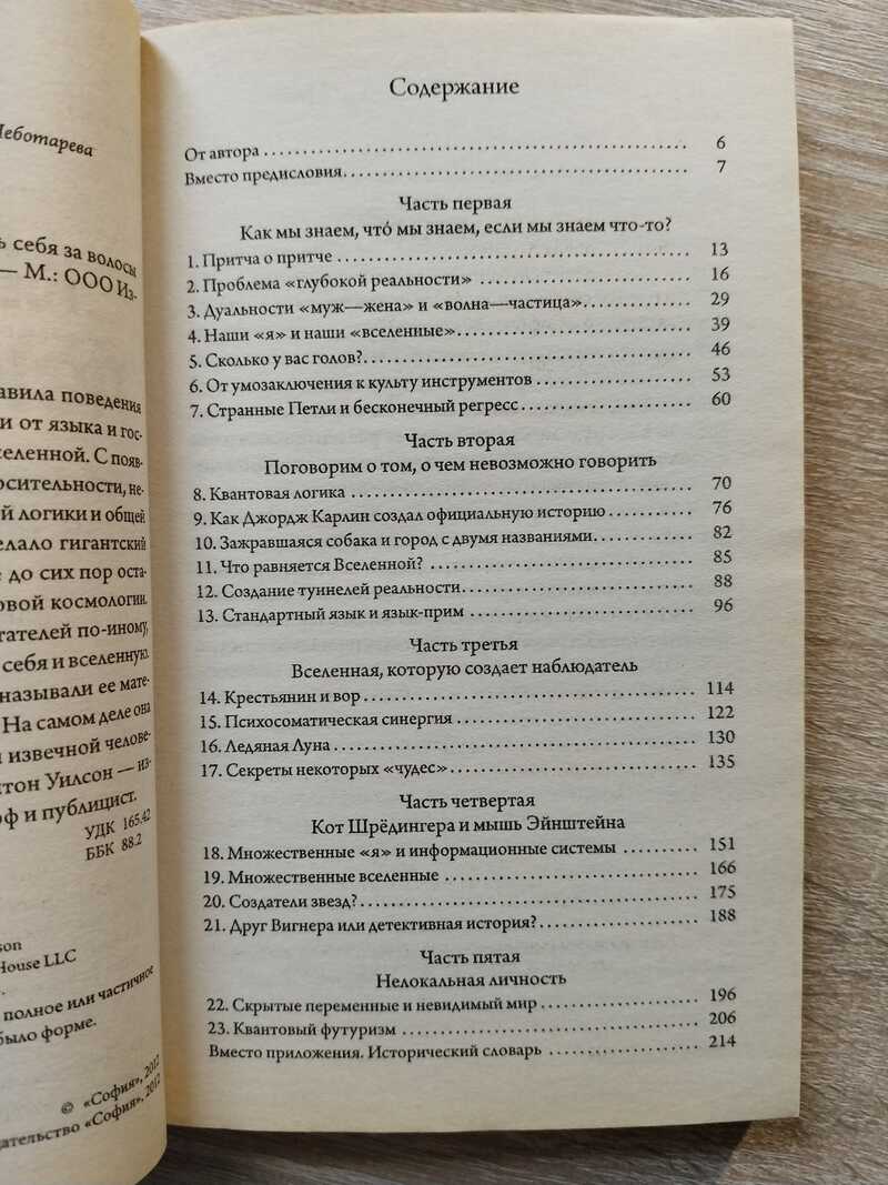 Человеческие мысли, ценности и правила поведения всегда находились в сильной зависимости от языка и господствующих воззрений на устройство вселенной. С появлением квантовой механики, теории относительности, неевклидовой геометрии, неаристотелевской логики и общей семантики научное миропонимание сделало гигантский шаг вперед. Но человеческое мышление до сих пор остается глубоко укорененным в средневековой космологии. «Квантовая психология» заставляет читателей по-иному, на уровне XXI века, воспринимать самих себя и вселенную. Одни критики, не понявшие эту книгу, называли ее материалистической, другие — мистической. На самом деле она предлагает путь выхода за пределы этой извечной человеческой полярности. Ее автор Роберт Антон Уилсон — известный современный писатель, философ и публицист.
