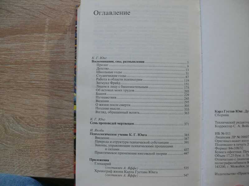 Основу сборника составляют автобиография К.Г.Юнга `Воспоминания, сны, размышления` и работа А.Яффе `Психологическое учение К.Г.Юнга` - краткое систематическое изложение юнговской аналитической психологии. В сборник включена ранняя работа К.Г. Юнга `Семь проповедей мертвецам`, а также Глоссарий психологических терминов и Хронограф жизни и творчества Юнга, составленные А.Яффе.