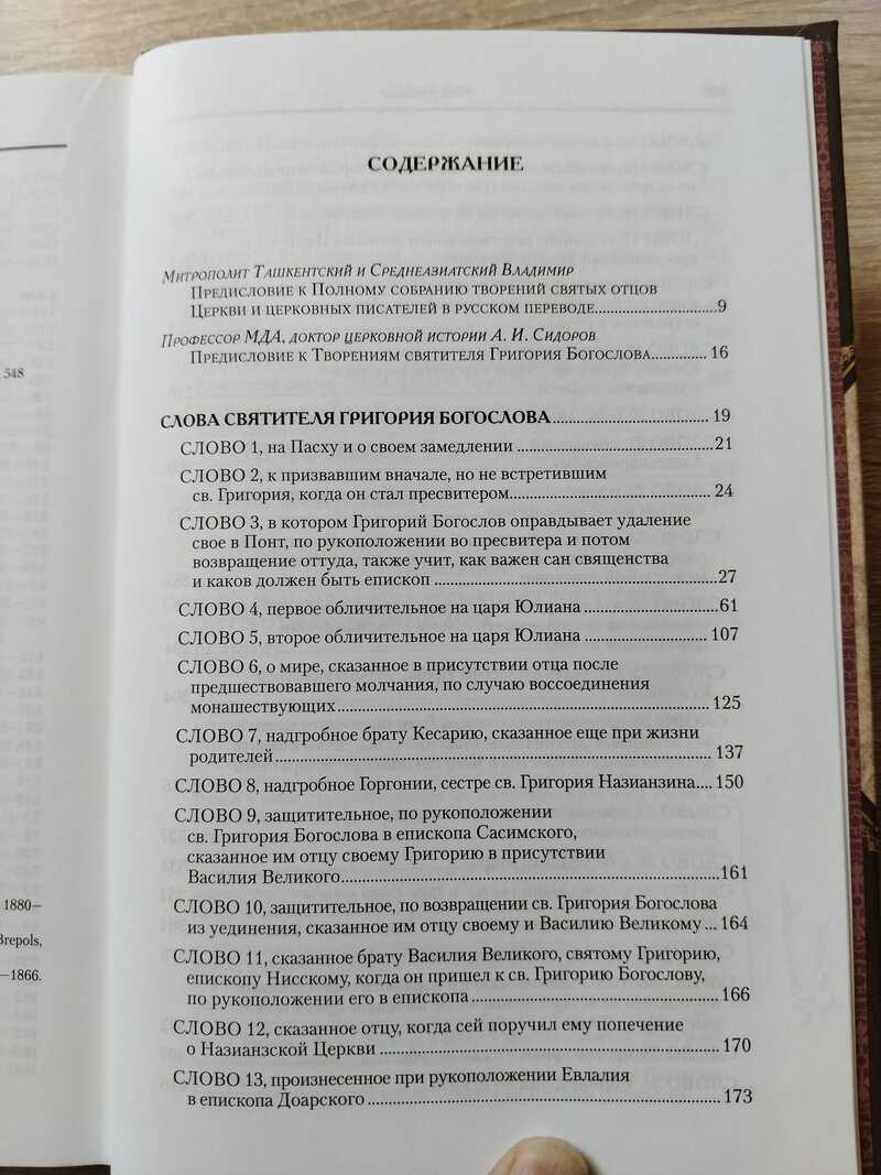 В первый том вошли знаменитые 45 Слов святителя, создавшие ему немеркнущую славу не только знаменитого подвижника Православной Церкви, но и великого богослова, прославленного церковного писателя и блестящего оратора. Эти произведения представляют лучшее, что создал свт. Григорий на ниве церковного богословия. В них отразилась вся сила таланта святителя. Написанные по различным поводам и в разные периоды жизни св. Григория, они открывают нашему духовному взору возвышенную красоту богословских умозрений, талант полемиста и защитника церковного учения от еретиков, наблюдательного бытописца, дающего важные исторические сведения о своей эпохе, событиях и лицах своего времени. На особом месте стоит ораторский талант св. Григория, проявившийся в Словах. Уже вскоре после своей святой кончины святитель Григорий был назван «христианским Демосфеном» в честь знаменитого и непревзойденного античного оратора. Многие из представленных в данном томе 45 Слов были произнесены св. Григорием в качестве церковных проповедей и своей удивительной силой воздействовали на сердца и умы слушателей. Исключительную роль сыграли знаменитые 5 Слов о богословии, во многом переломившие судьбу противостояния между арианами и православными в Константинополе в 380 г. и послужившие благодатной почвой для созыва в 381 г. Второго Вселенского Собора. В приложении помещено одно из лучших отечественных исследований жизни и учения св. Григория - книга свящ. Н. Виноградова «Догматическое учение св. Григория Богослова», а также указатель цитат из Священного Писания.