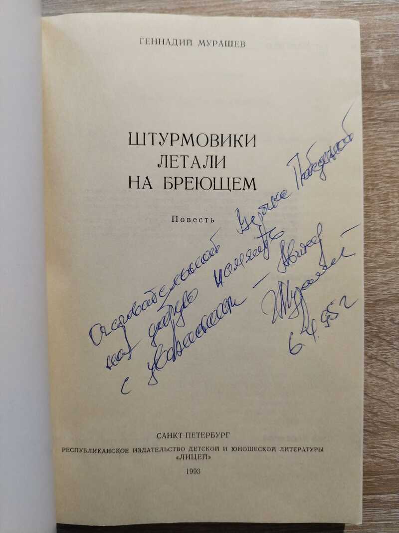 Автограф автора на книге Штурмовики летали на бреющем
