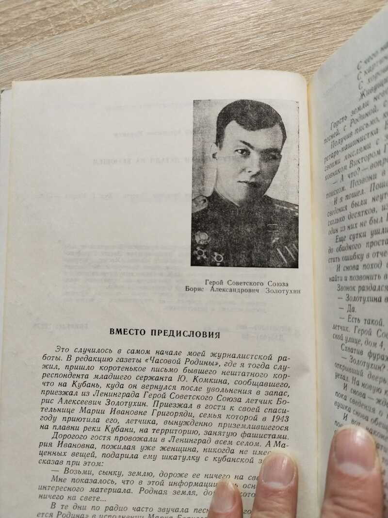 Документально - художественная повесть о летчике Герое Советского Союза Золотухине Борисе Александровиче, имевшем почетное звание `Мастер штурмовых ударов`, о Марии Ивановне Григоряди, с риском для жизни спасавшей летчика, упавшего на неисправном самолете в плавни Кубани на занятой врагом территории. С иллюстрациями. Тираж 5000.