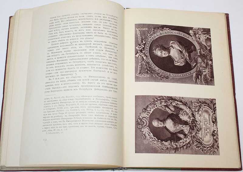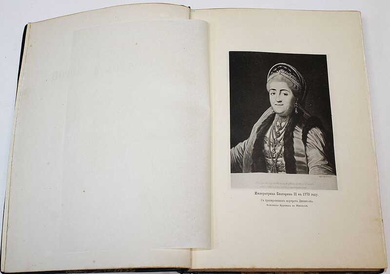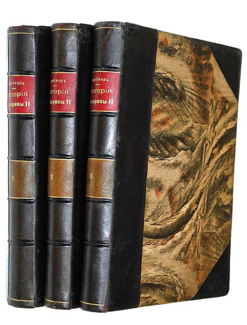Ч. 1: Путь к престолу. – VIII, 9-26, [2]. IV, 29-148 с., ил., 23 л. ил.; Ч. 2: Внутренние смуты. – [6], IV, 155-254 с., ил., 5 л. ил.; Ч. 3: Внешняя политика. – [6], VI, 261-516 с., ил., 19 л. ил.; Ч. 4: Внутренняя политика. – [4], IV, 523-660 с., ил., 3 л. ил.; Ч. 5: Последние годы. Личность императрицы. – [6], V, 667-802, 36, XVI с., ил., 11 л. ил. /// Первое издание на русском языке монументального труда Александра Густавовича Брикнера (1834–1896). Каждая часть посвящена отдельному периоду в жизни Екатерины Великой. Иллюстративный материал включает портреты членов императорской фамилии и сподвижников Екатерины, виды городов, сёл, дворцов, жилых домов, изображения батальных сцен, памятных медалей, экипажей, памятников. В подготовке книги принимали участие лучшие знатоки гравюр того времени П.Я.Дашков и Д.А.Ровинский.