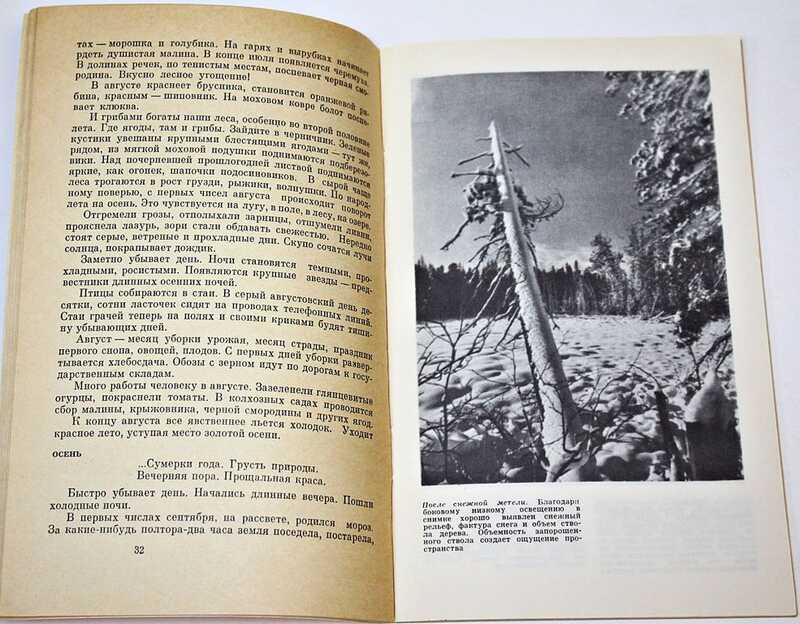 Особенности фотосъемок животных, птиц, растений, насекомых, об опыте фотографирования живой природы известными учеными, фотографами-натуралистами. Даются практические советы по аппаратуре, оптике и технике фотографии. Экскурсии с фотоаппаратом. Выбор фотоаппарата и методы съемки крупным планом. Фотосъемка растений. С фотоаппаратом среди насекомых.