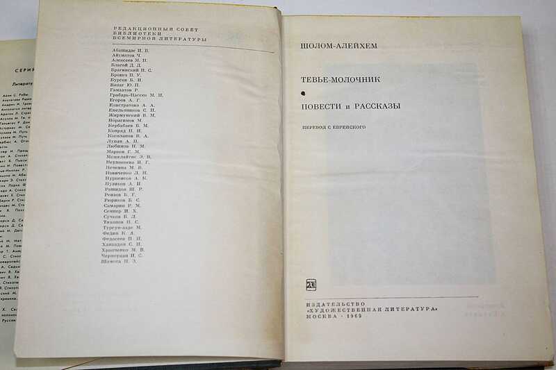 В книгу еврейского писателя Шолом-Алейхема (1859-1916) вошли повесть «Тевье-молочник» о том, как бедняк, обремененный семьей, вдруг был осчастливлен благодаря необычайному случаю, а также повести и рассказы: «Ножик», «Часы», «Не везет!», «Рябчик» и другие.