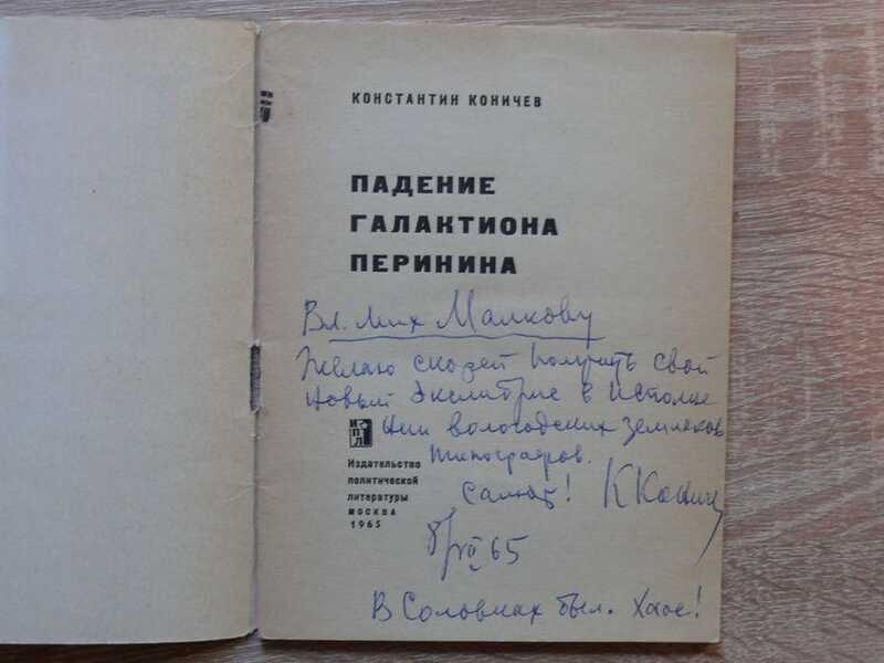 Развернутый автограф - записка автора натитульном листе Владимиру Михайловичу Малкову - директору Вологодского Книжного Издательства, затем руководителю Вологодского Отделения Северо-Западного Книжного Издательства. Экслибрис Константина Коничева. Константин Иванович Коничев — русский советский писатель, журналист, фольклорист. Редактор издательства в Архангельске, возглавлял местное отделение Союза писателей СССР, редактировал альманах «Север». В 1952—1953 — главный редактор Лениздата. Участник Великой Отечественной войны. Основные темы произведений писателя — русский Север, судьбы его исторических деятелей. Автор цикла историко-биографических книг о М. В. Ломоносове, скульпторе Федоте Шубине, зодчем Андрее Воронихине, художнике Василии Верещагине, издателе И. Д. Сытине и др. Много труда отдал собиранию северного фольклора, опубликовав по этим материалам выдержавший два издания сборник «Песни Севера, частушки, пословицы, загадки».