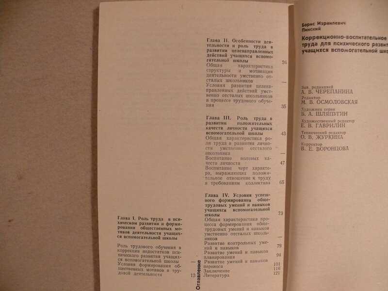 Монография посвящена важной проблеме подготовки учащихся вспомогательной школы к самостоятельной жизни и посильному труду. Дается психологический анализ процесса трудового обучения, показана роль труда в коррекции недостатков психического развития аномальных учащихся, в формировании адекватной самооценки, мотивации, потребностей, интересов и других положительных качеств личности. Для дефектологов.