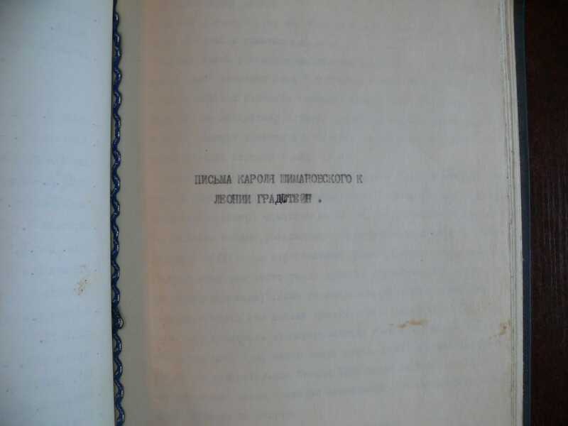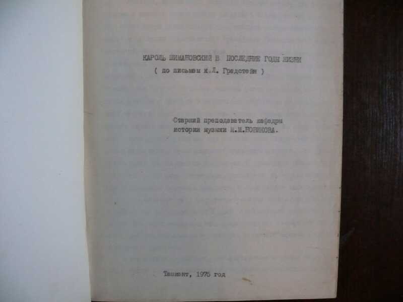 Кароль Шимановский в последние годы жизни. По письмам к Л. Градстейн. Машинописный оттиск