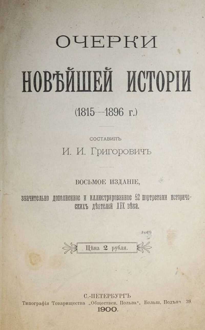 Очерки Новейшей истории (1815 – 1896 г