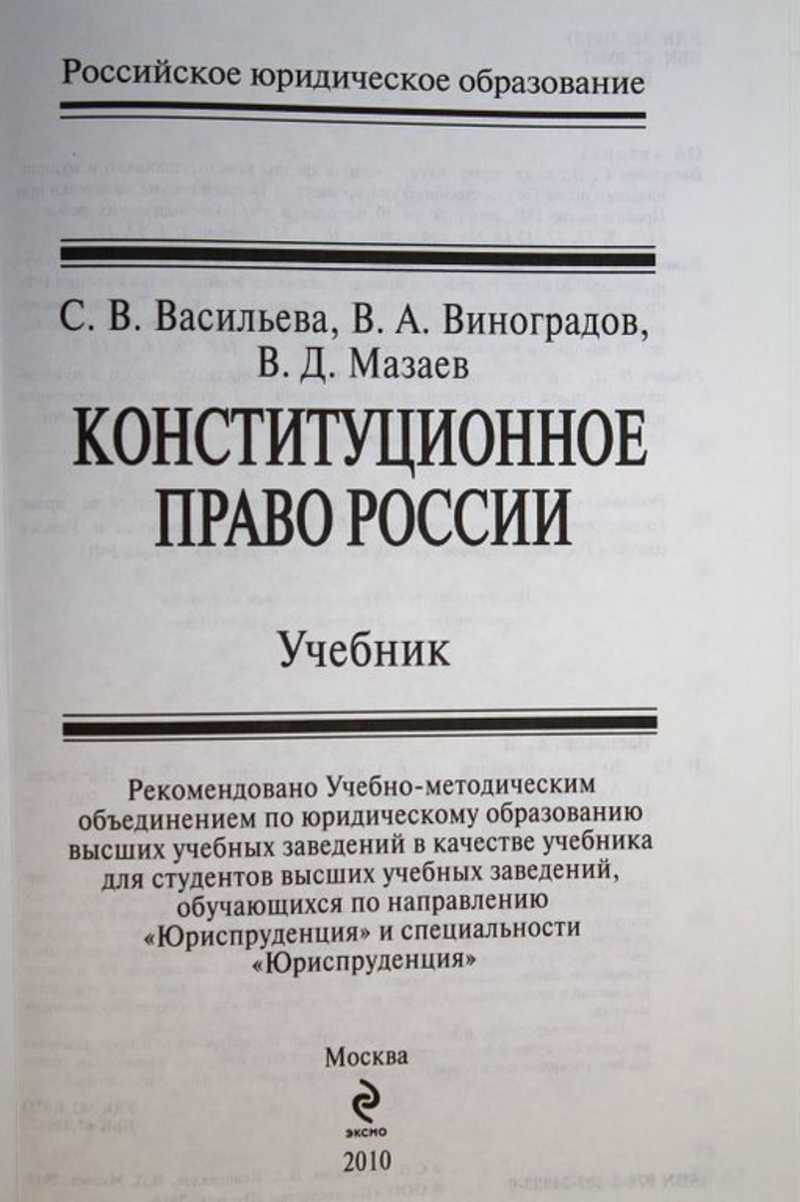 Учебник подготовлен в соответствии с Государственным образовательным стандартом высшего профессионального образования по учебному курсу "Конституционное право России". Авторами представлены основные понятия, основы теории и базовые институты конституционного права России в соответствии с традиционным подходом к изложению этой дисциплины. Вопросы современного конституционного права раскрыты с учетом новейших положений науки и последних изменений Конституции РФ и конституционного законодательства России. Оригинальная методика выделения важнейших положений в виде отдельных рубрик позволяет более просто и доступно воспринимать материал.
